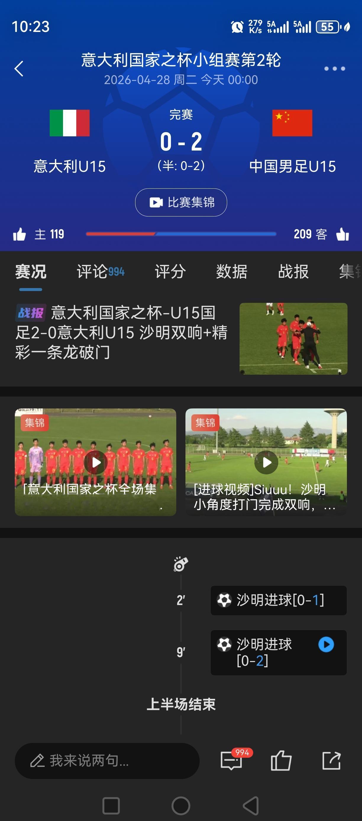 U15国少2:0完胜意大利!客场胜!牛![赞][赞][赞][赞]