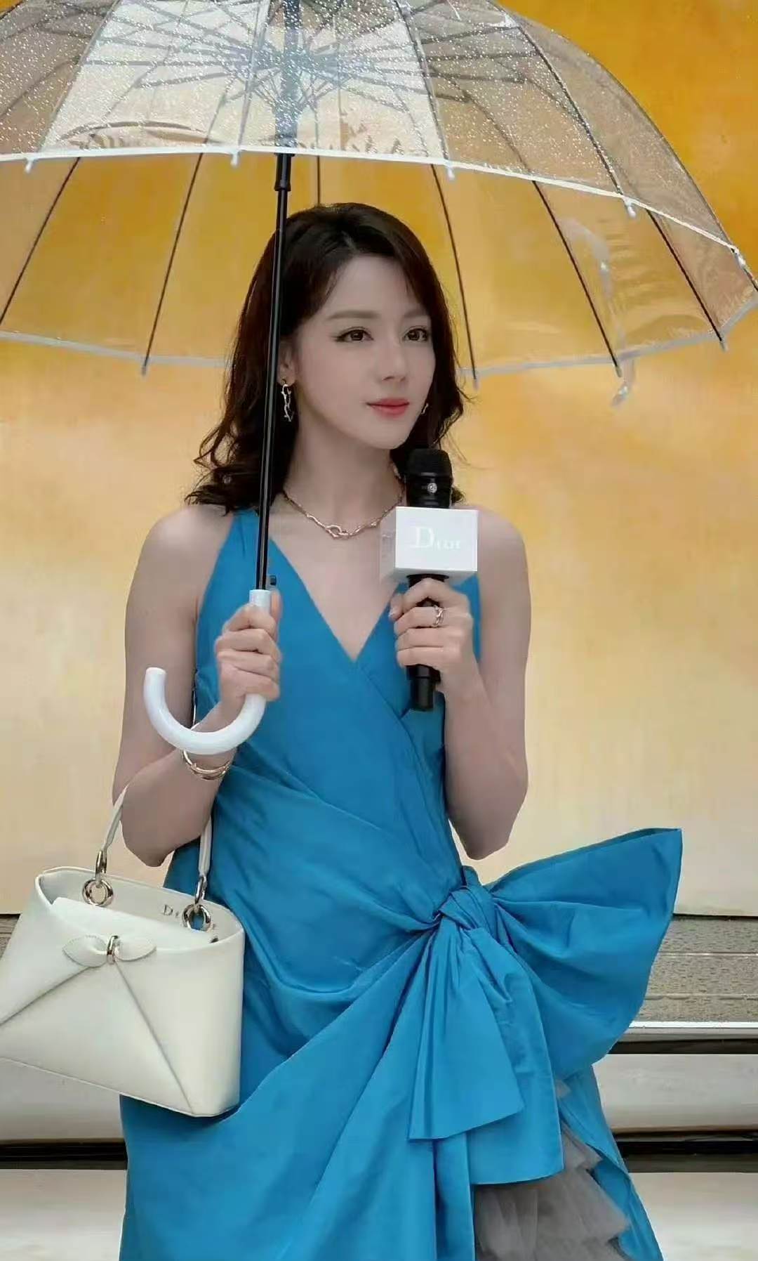 迪丽热巴超大蝴蝶结蓝裙迪丽热巴水波纹湖蓝长裙 迪丽热巴这个蓝裙好美! 线下生图这么牛。