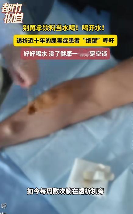 这句看似普通的话,却是他用近10年透析生活换来的沉重教训,近日,这段视频被媒体报道后,引发大量网友关注,不少人直言,看完后再也不敢把饮料当水喝了。