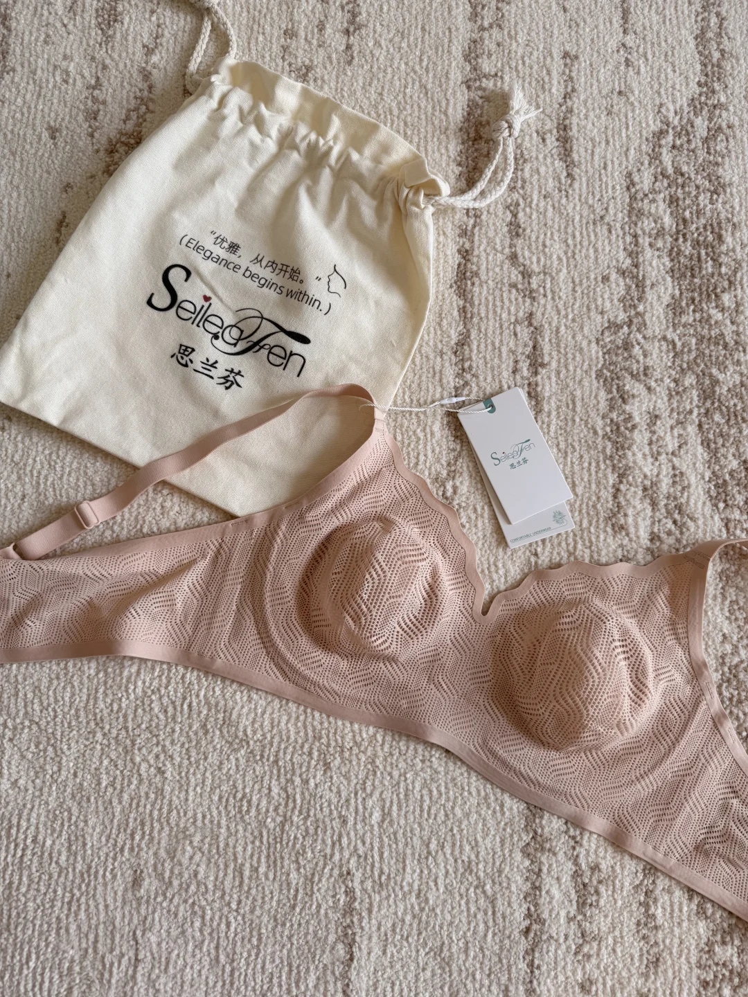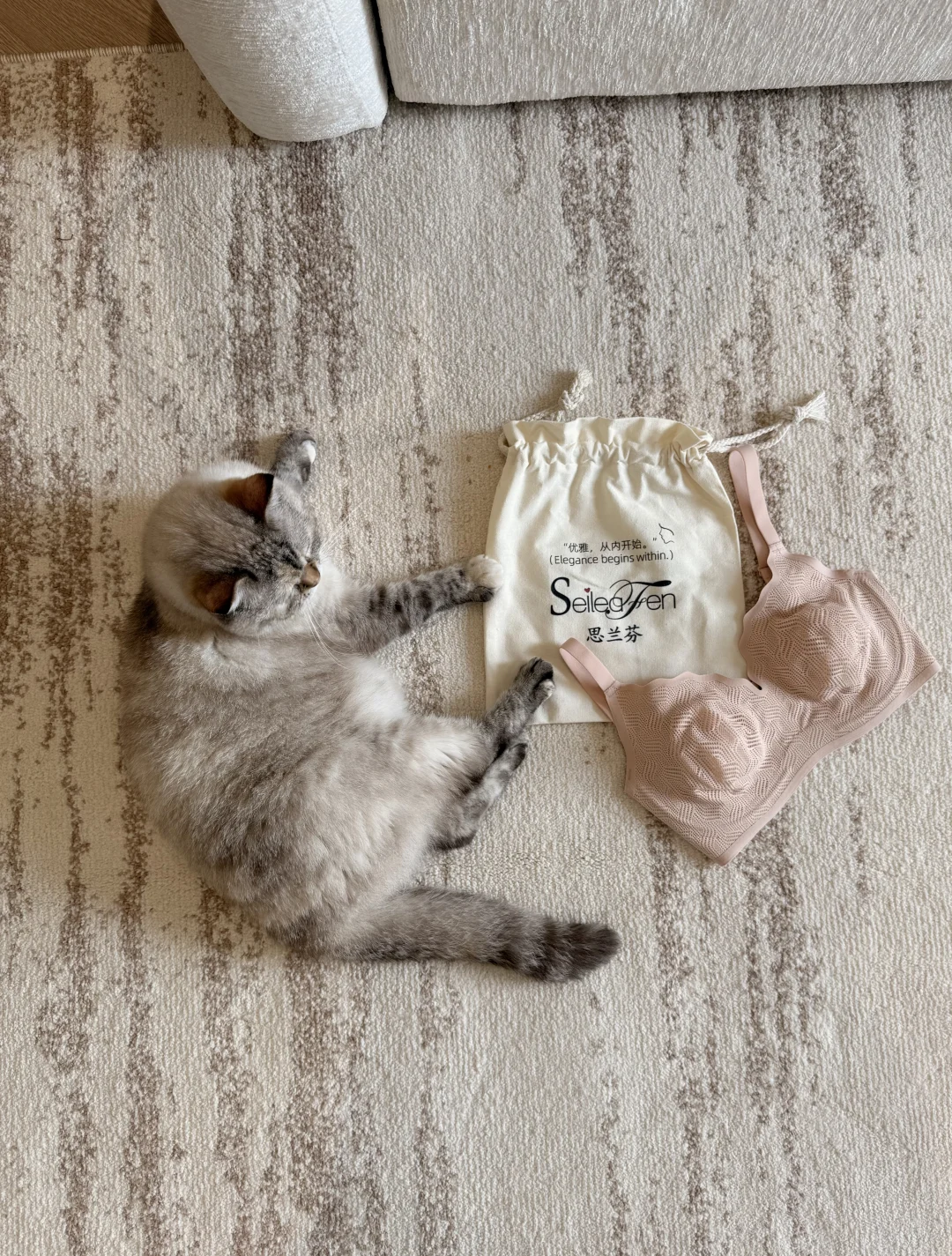 坐在地毯上拆了新内衣,超薄透气好适合夏天呀