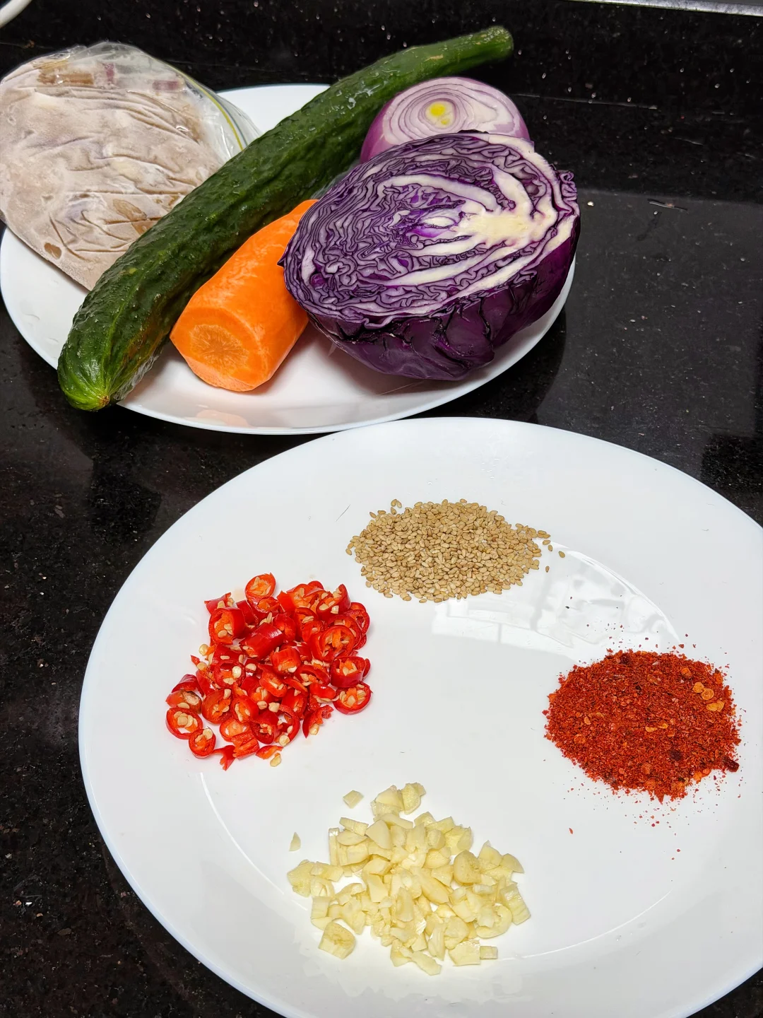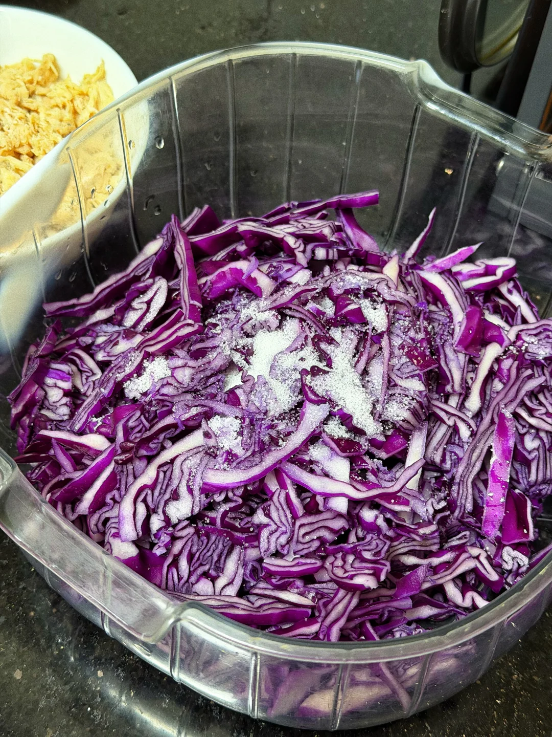 2.紫甘蓝切丝撒盐 杀出水分挤干备用