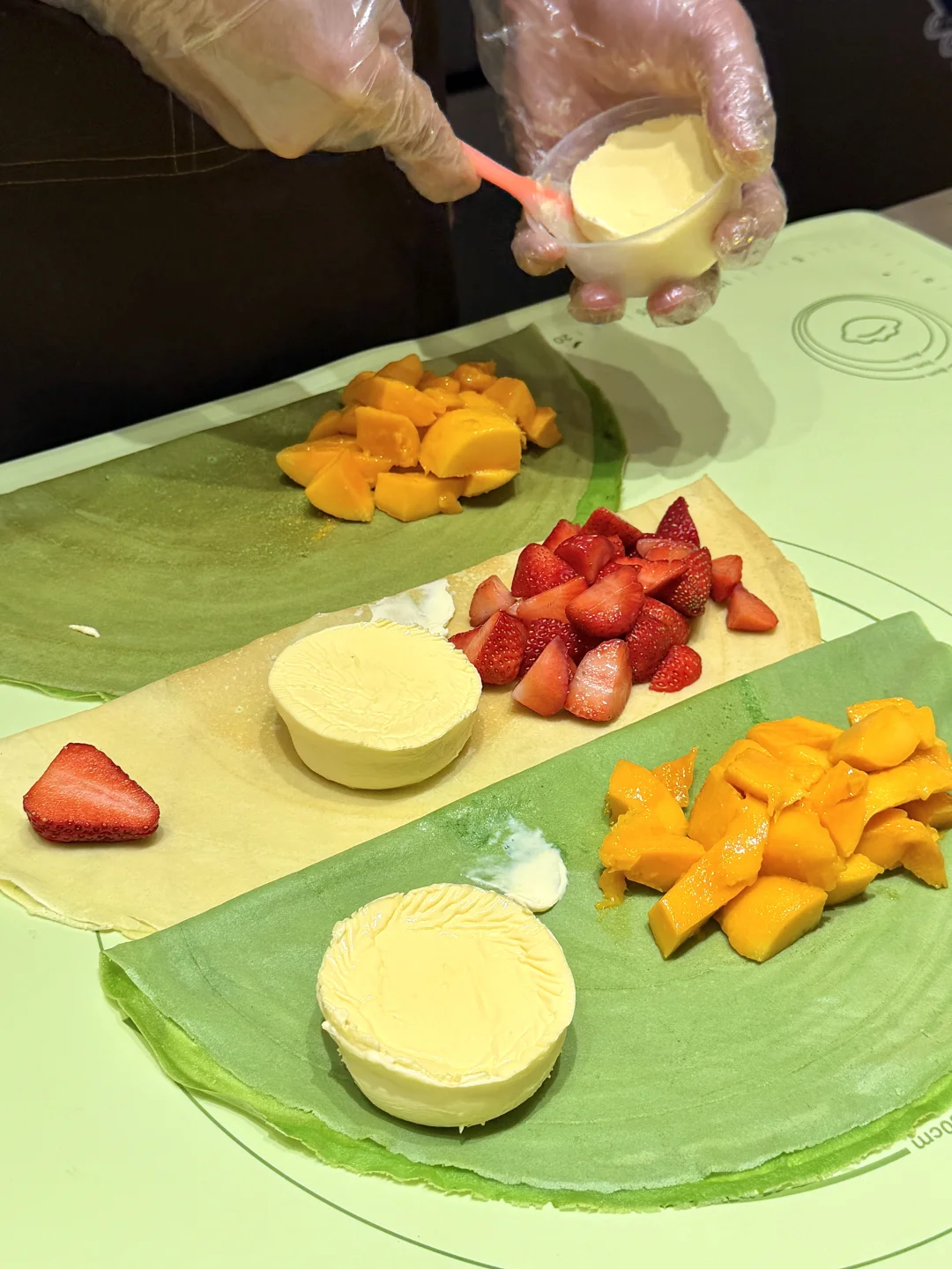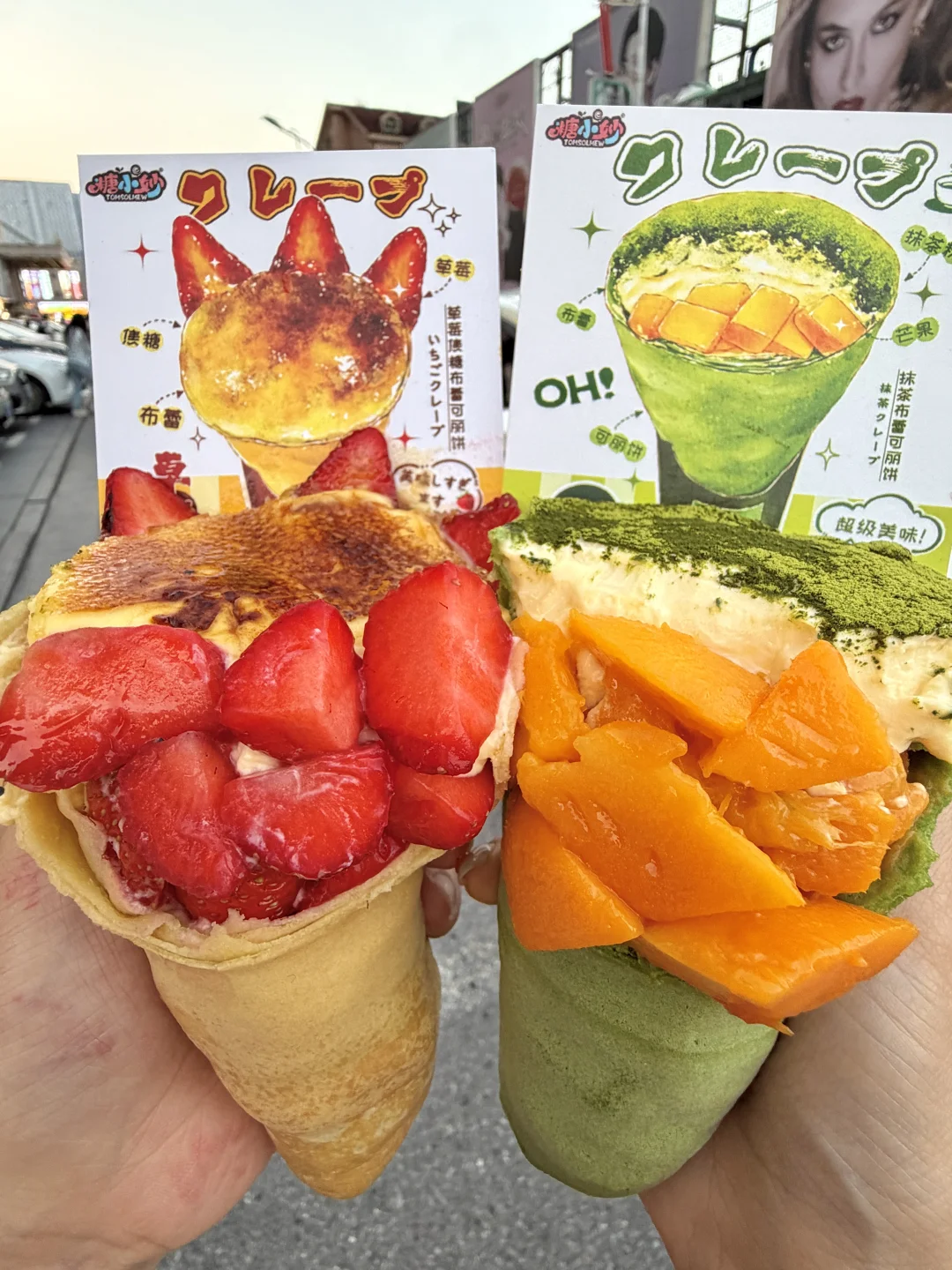 烤布蕾可丽饼!就在万家丽负一楼:糖小妙。草莓焦糖布蕾可丽饼、抹茶布蕾可丽饼……和朋友4个人吃了6个!仙品中的仙品