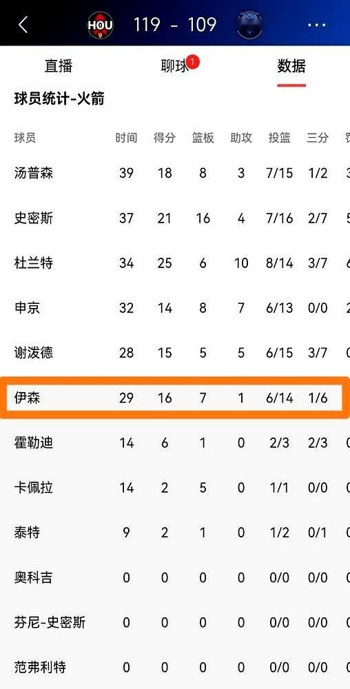 2022年选秀,伊森17顺位被火箭捡漏,当时球探报告说他是年轻版莱昂纳德。他打得也真硬,防守端就是个猎人,一场替补轰下16分7板,正负值全队最高。