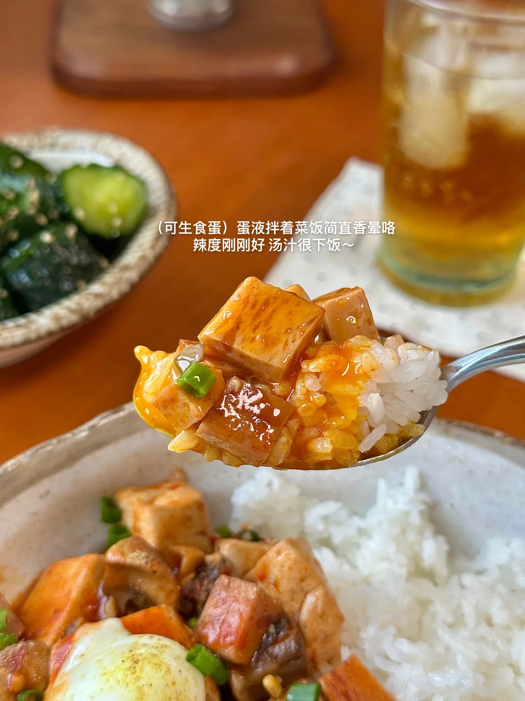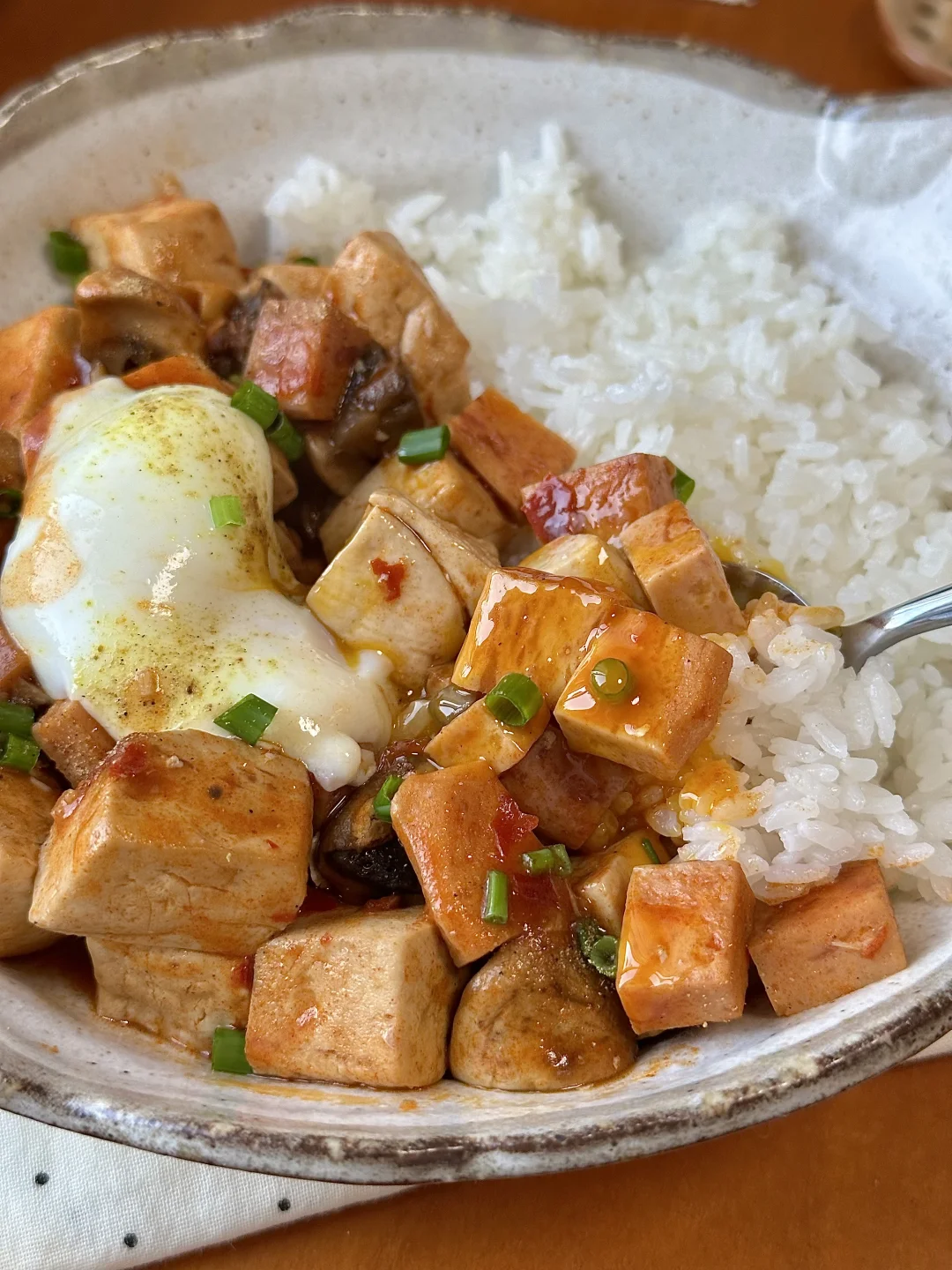 温泉蛋麻婆午餐肉豆腐盖饭