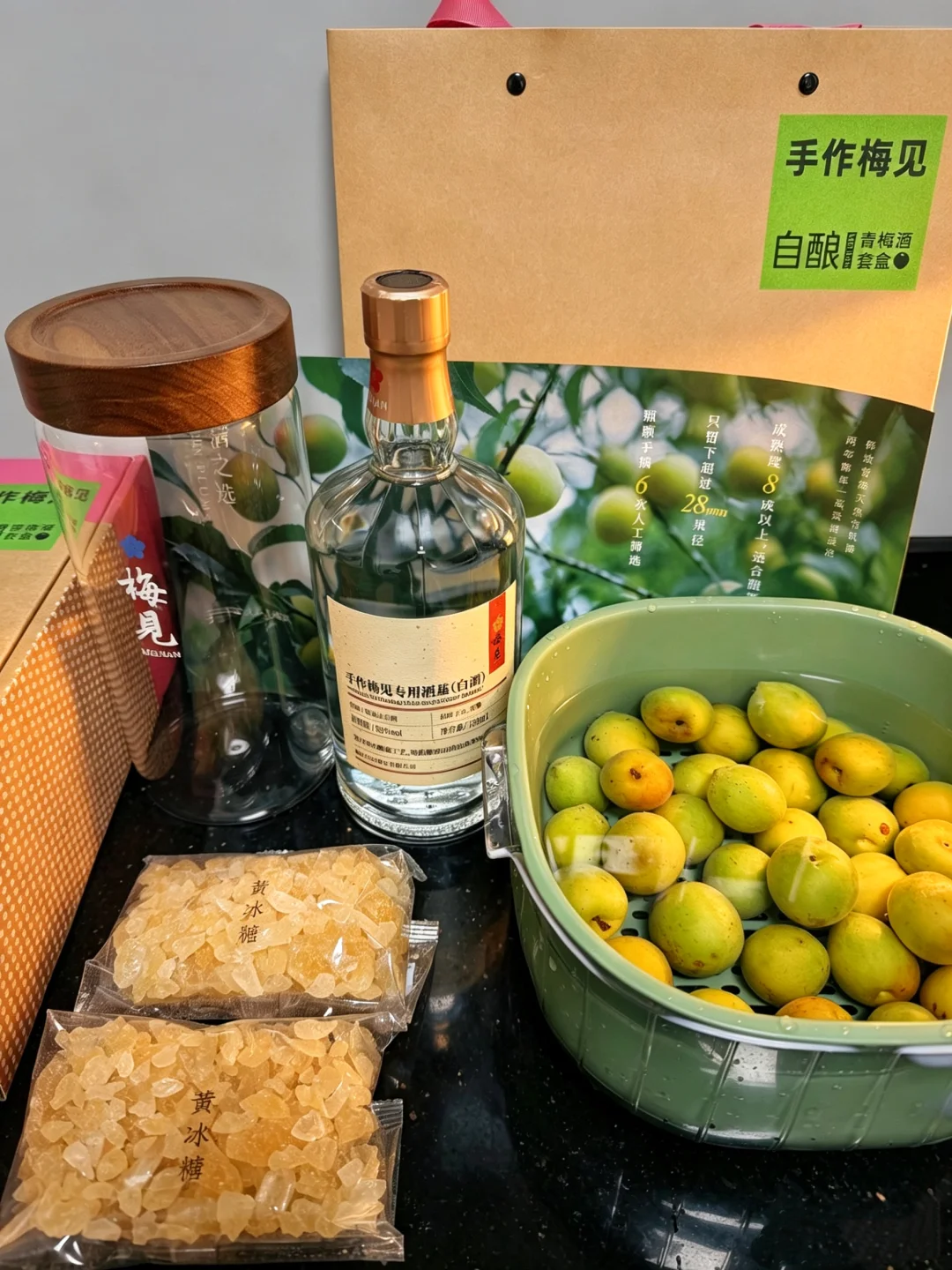梅、糖、酒黄金比例3:2:5 也可根据自己喜好增加糖
