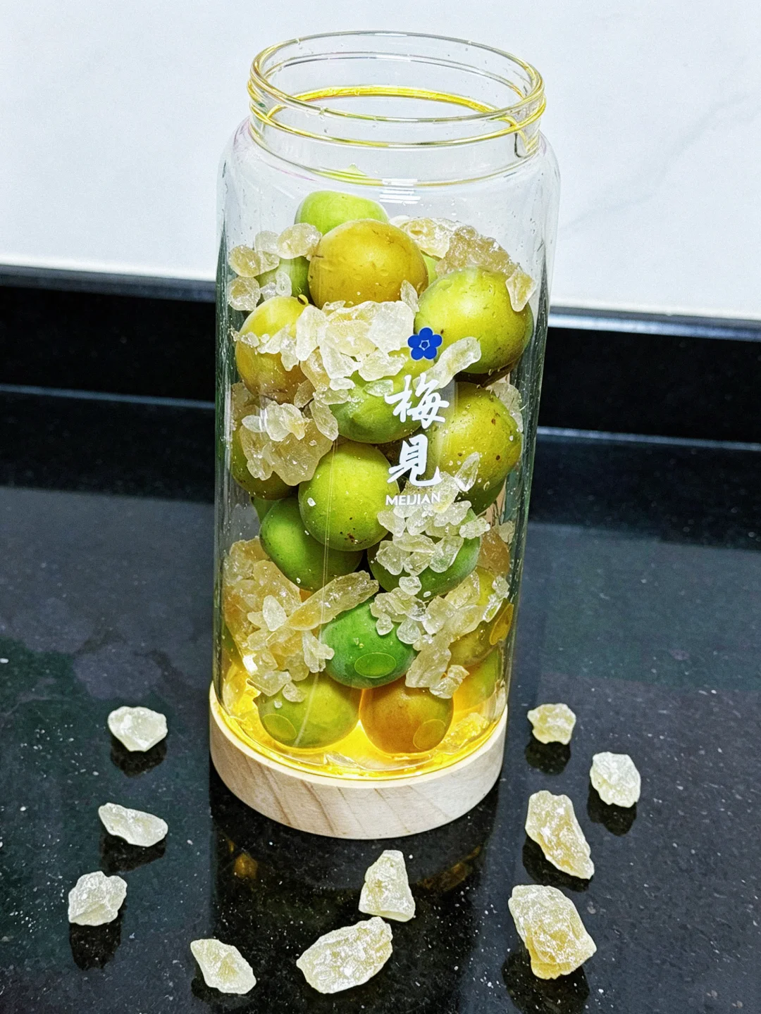 2.一层青梅一层冰糖 最后倒入基酒