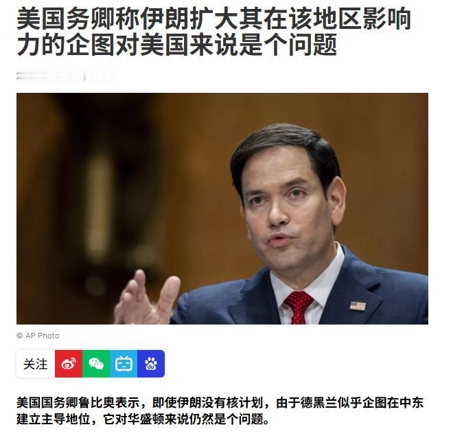 鹰派大佬鲁比奥一句不加掩饰的真心话,直接把美国的遮羞布撕得一干二净——就算伊朗没有核计划,光凭它要当中东老大这一点,就够美国头疼到无计可施。