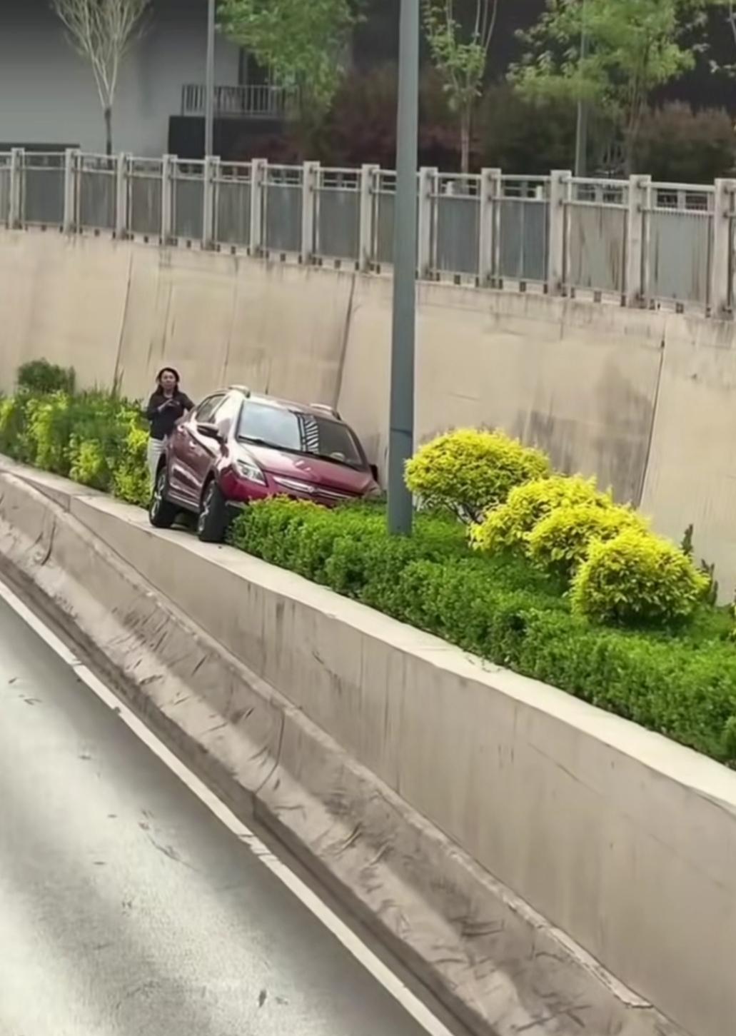 好奇怪呀,合肥这位姐姐,到底是怎么把车开上绿化带的?