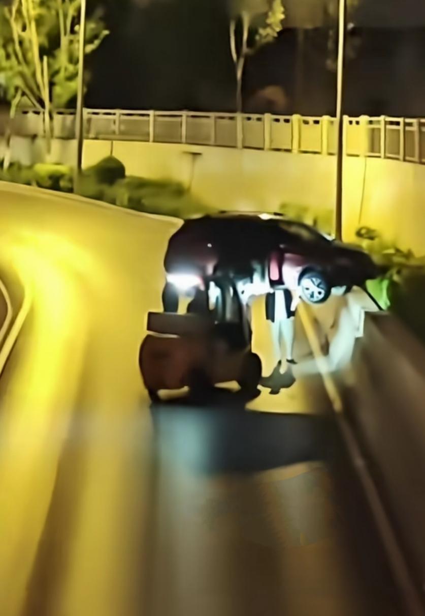 车也不像是从上面掉下来的,上面的护栏很完整。