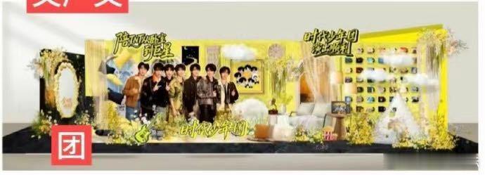 花墙图出了!!广州场这个黄色主题绝了,配上欧式圆镜和旁边那个沙发角�ACKNOW LEDGE好想窝进去追星啊哈哈哈哈,团粉唯粉cp粉大家都在各自整活,好热闹!时代少年团广州演唱会粉丝花墙