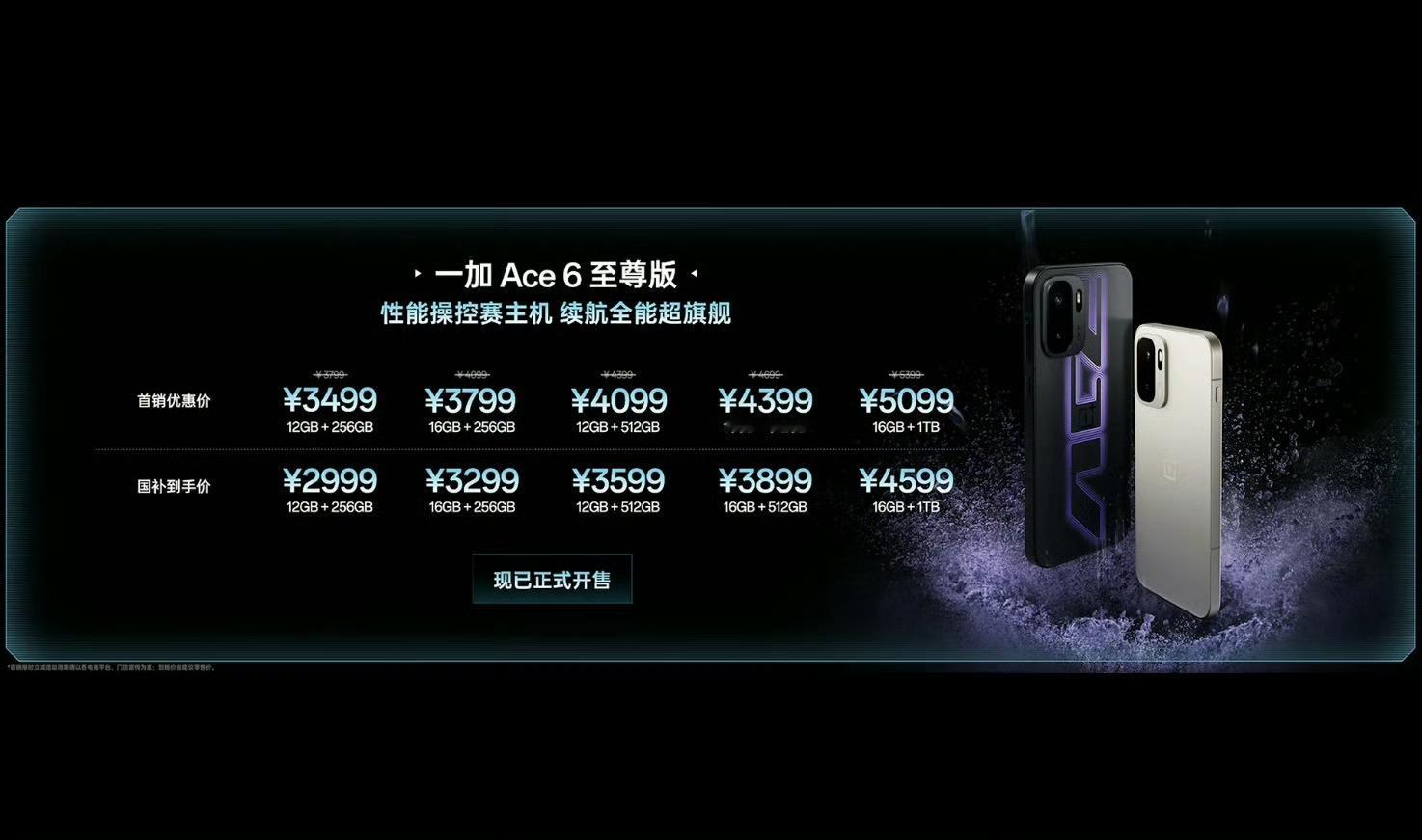 一加Ace6至尊版价格来了12+256版3499元16+256版3799元12+
