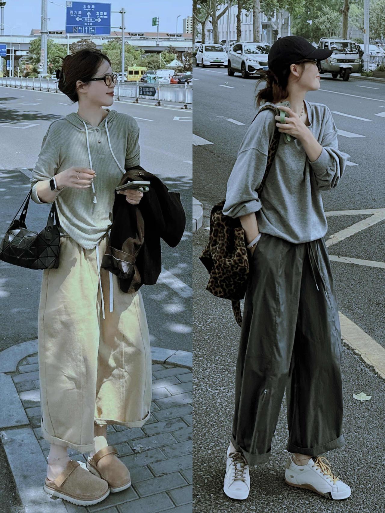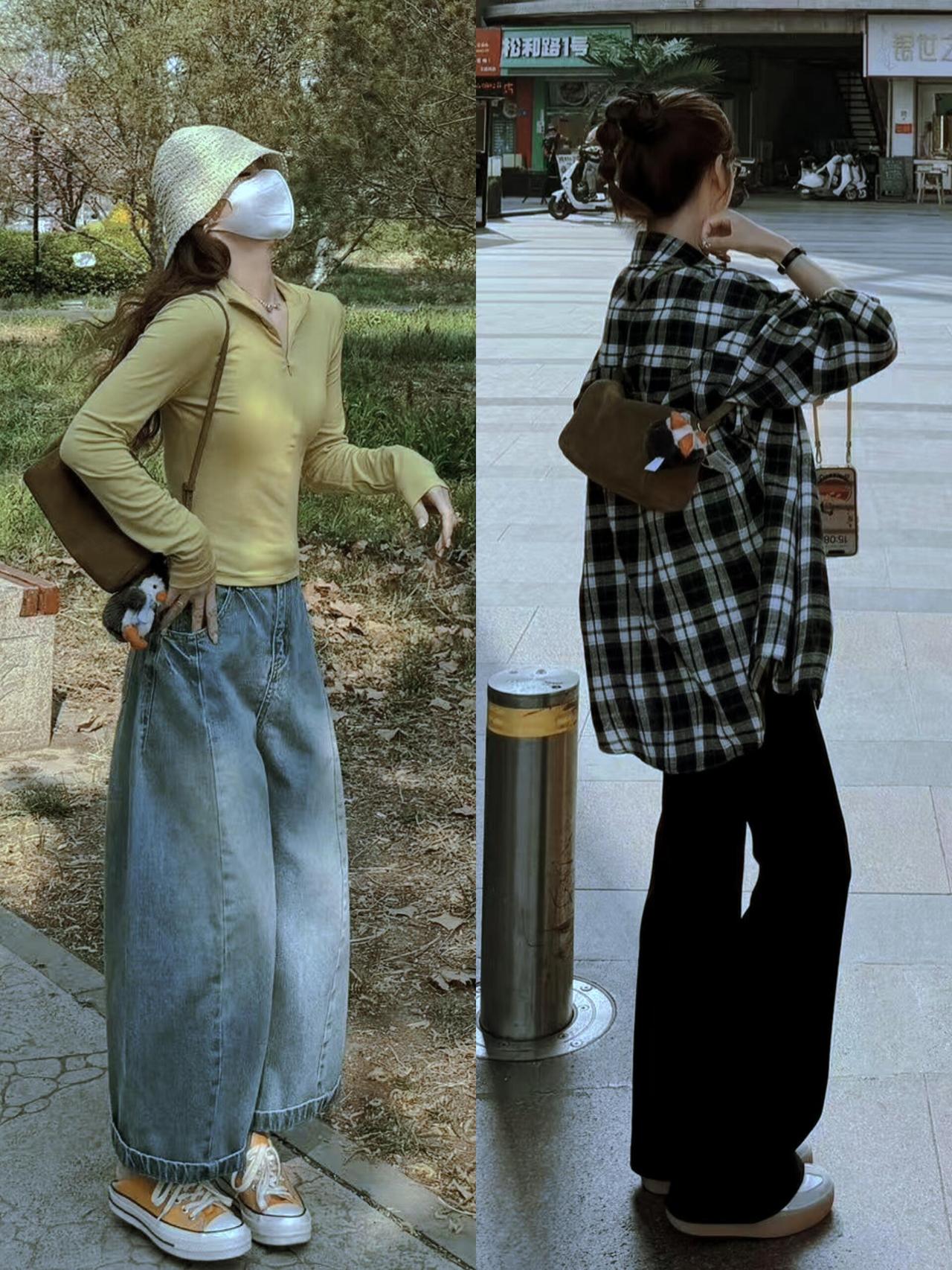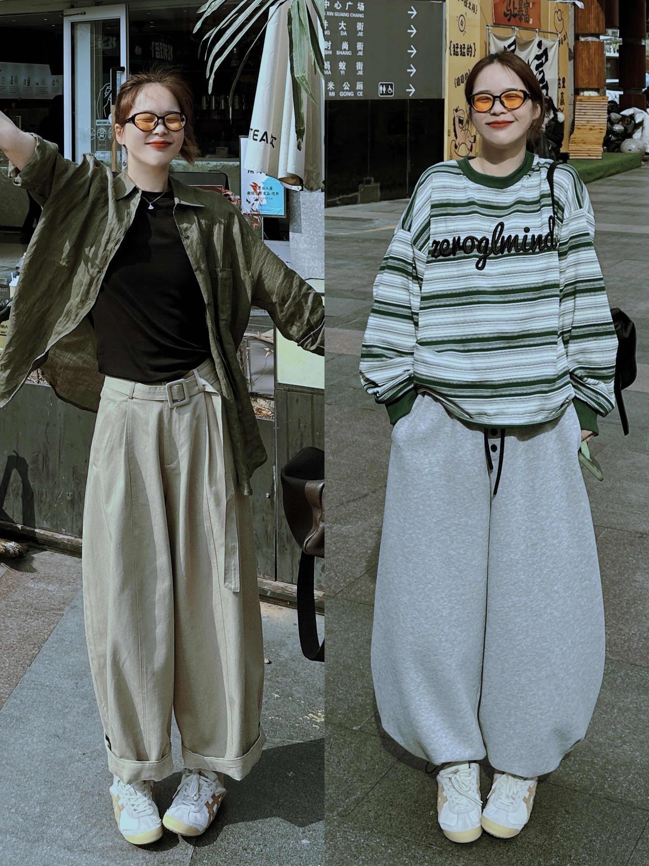 宽松的阔腿裤藏住肉肉,搭配柔软的针织衫、格纹衬衫或条纹卫衣,松弛又随性。低饱和色系温柔耐看,帆布鞋、勃肯鞋自带慵懒感,帆布包、棒球帽点缀细节,把舒适和时髦平衡得刚刚好,日常出门或逛街都适配,不费力就能穿出元气满满的少女感。