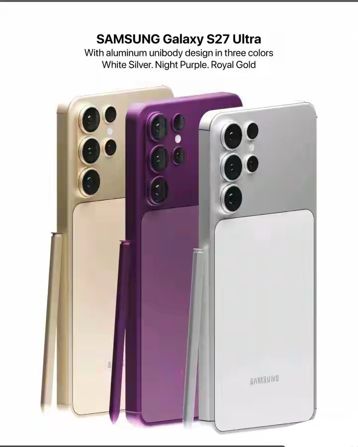 三星S27 Ultra这组渲染图真的戳到我了!!铝一体化机身质感拉满,三种配色里
