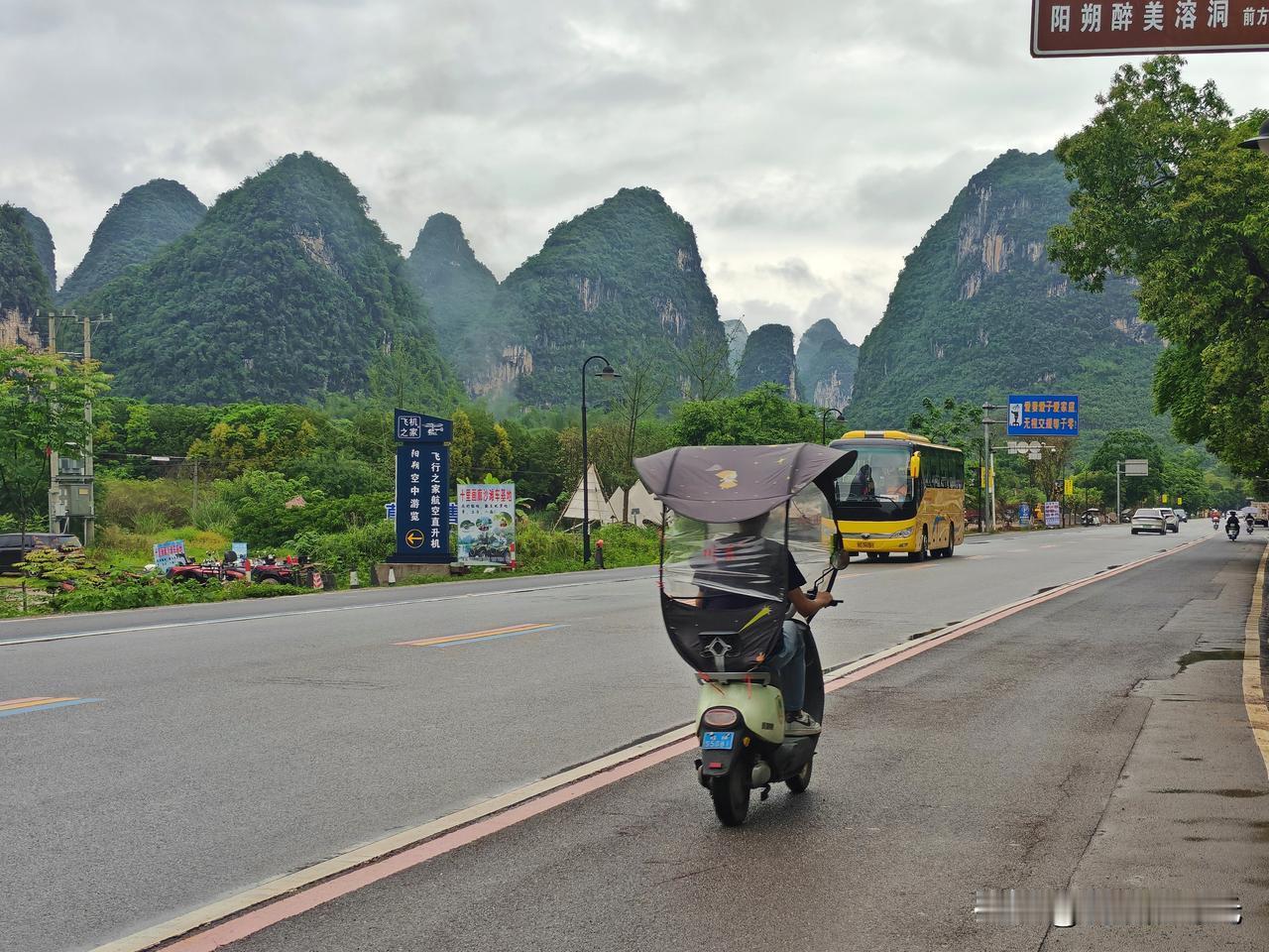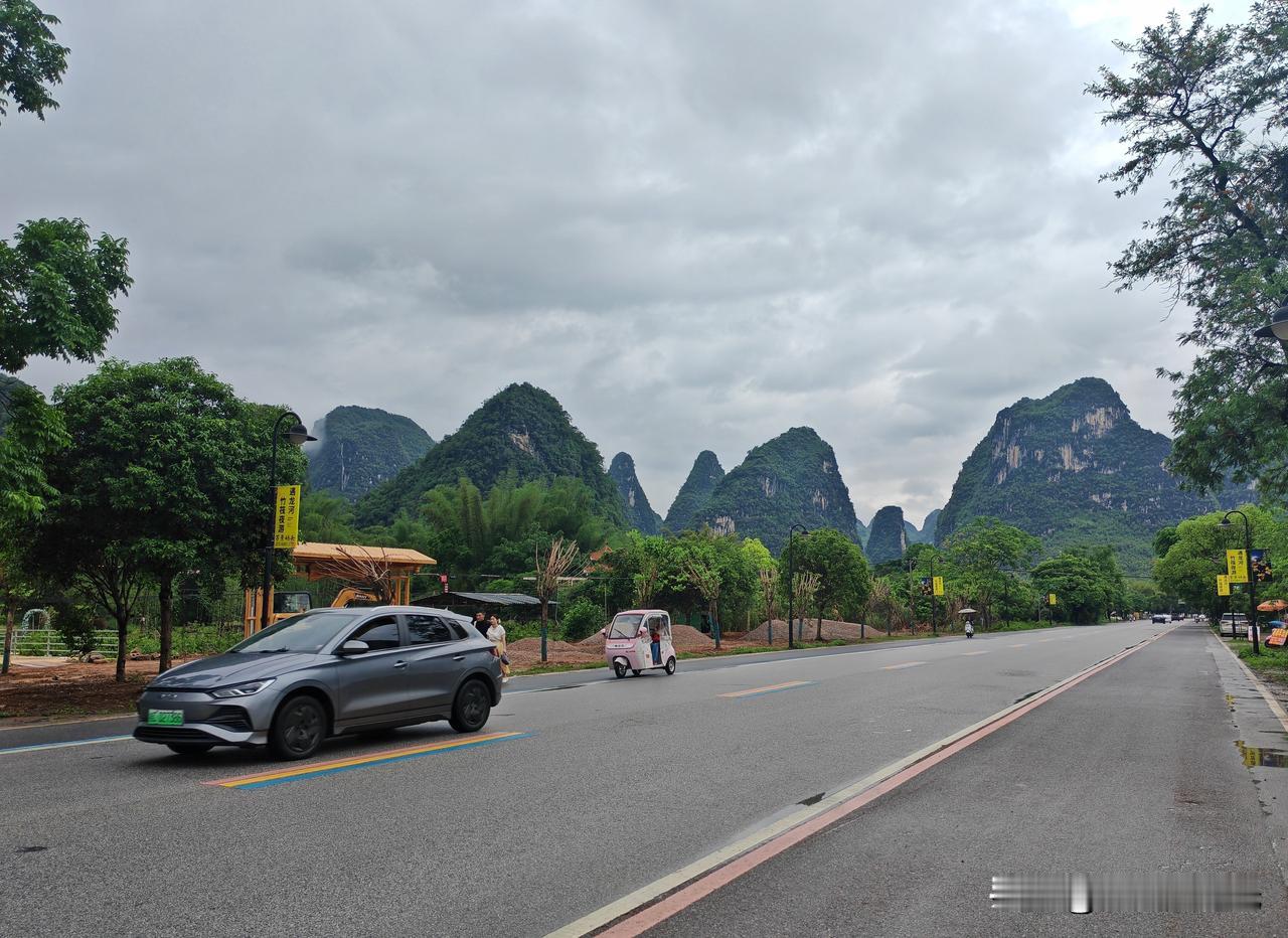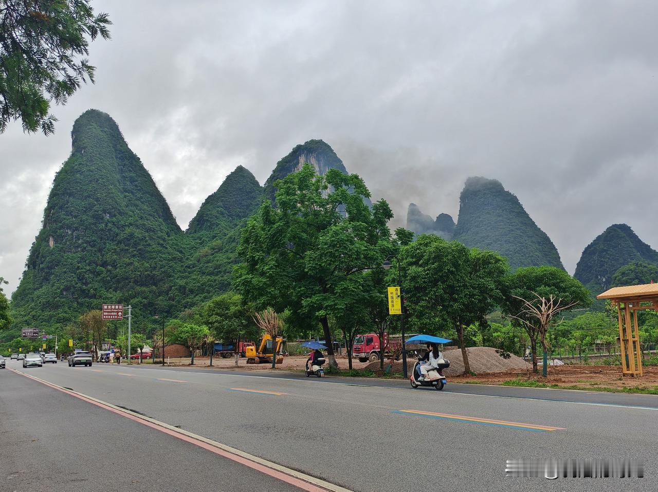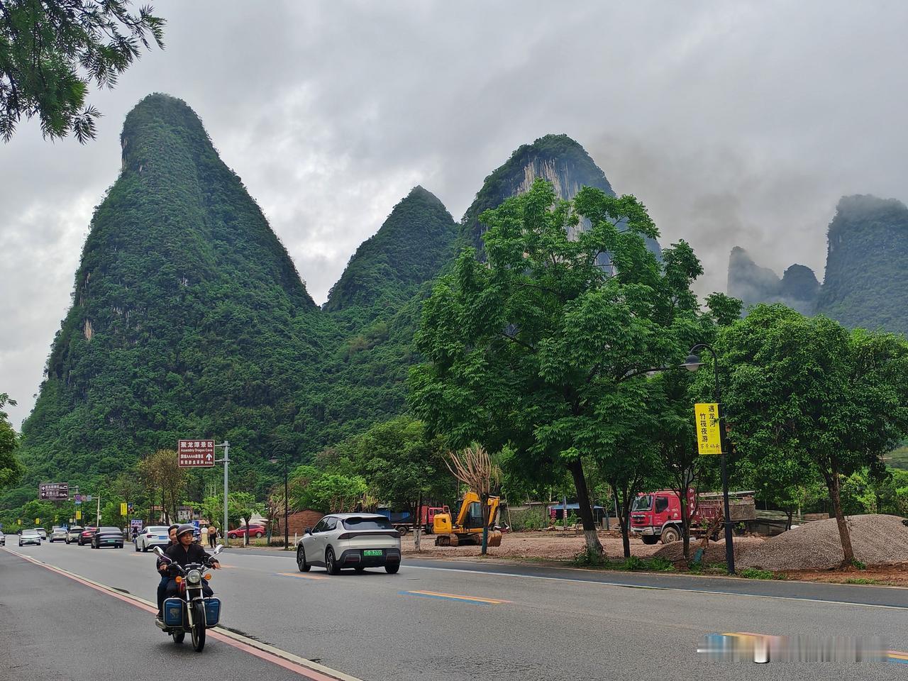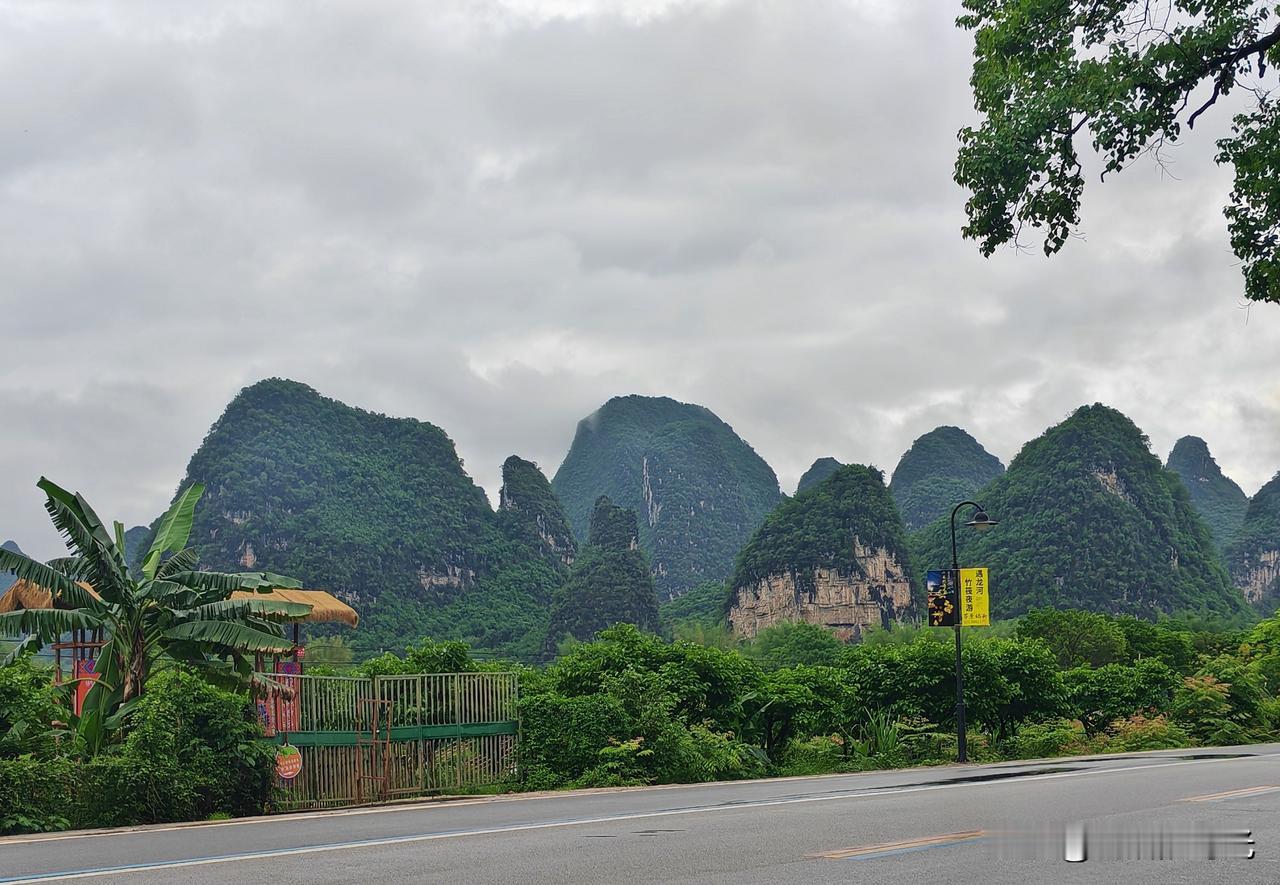分布在柏油路两侧一座座大大小小的奇峰,拼凑出了阳朔十里画廊。