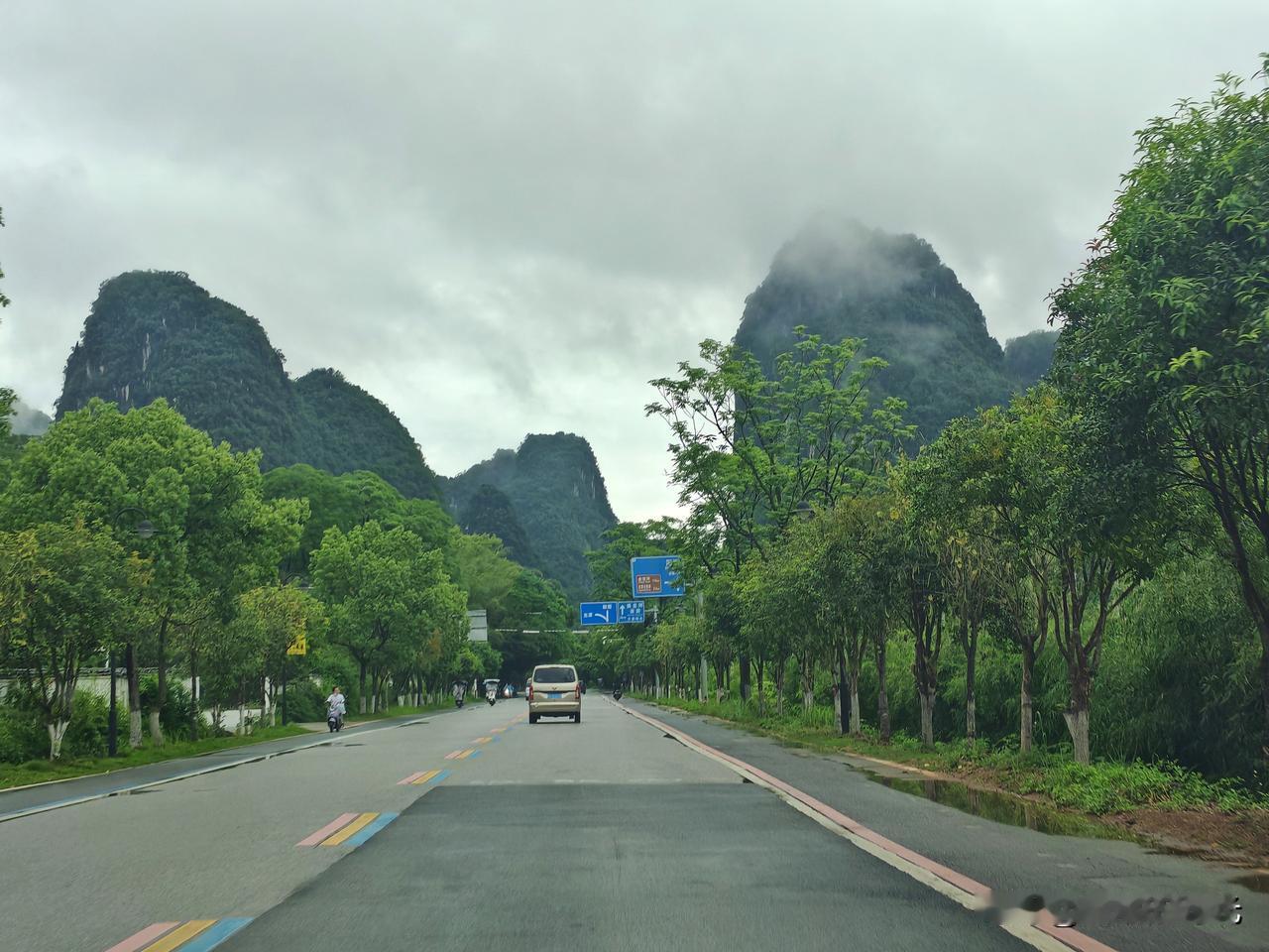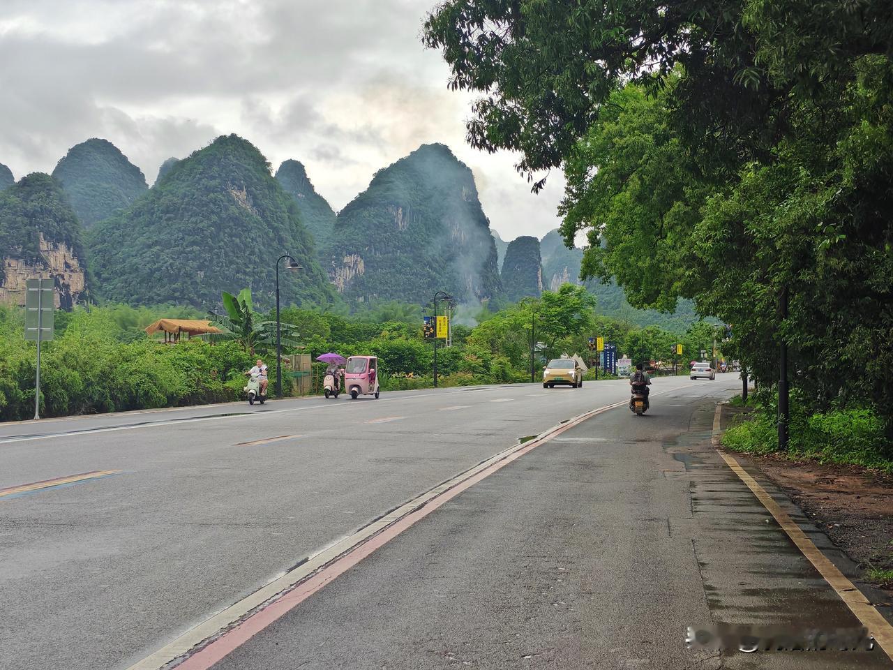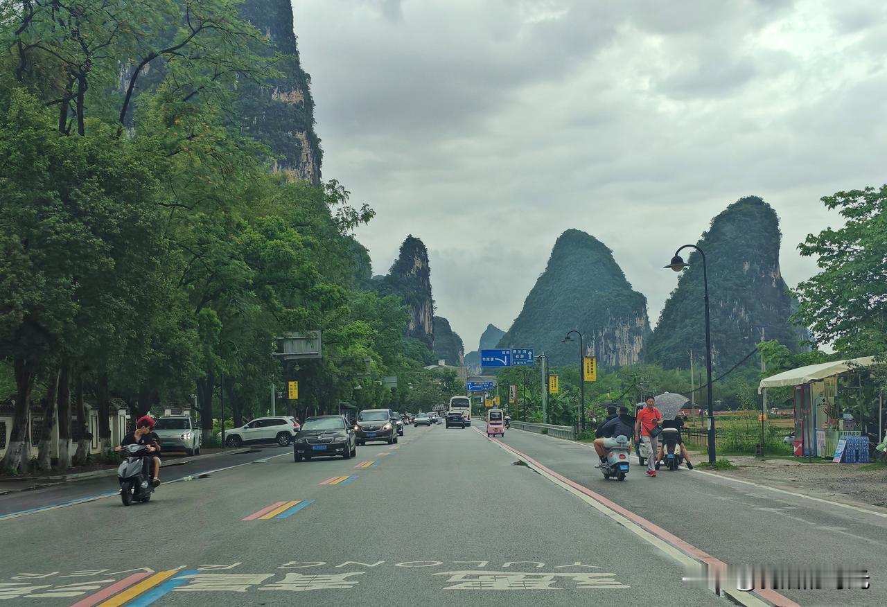 《阳朔十里画廊》 分布在柏油路两侧一座座大大小小的奇峰,拼凑出了阳朔十里画廊。