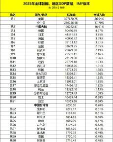 IMF2025年全球GDP数据新鲜出炉,关键数据精简速览: