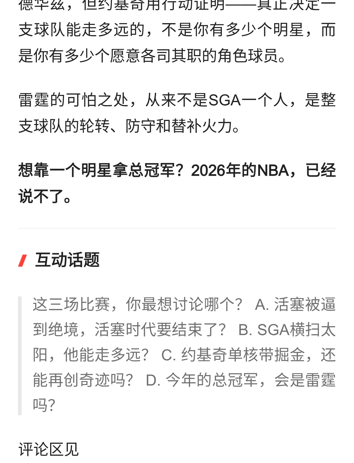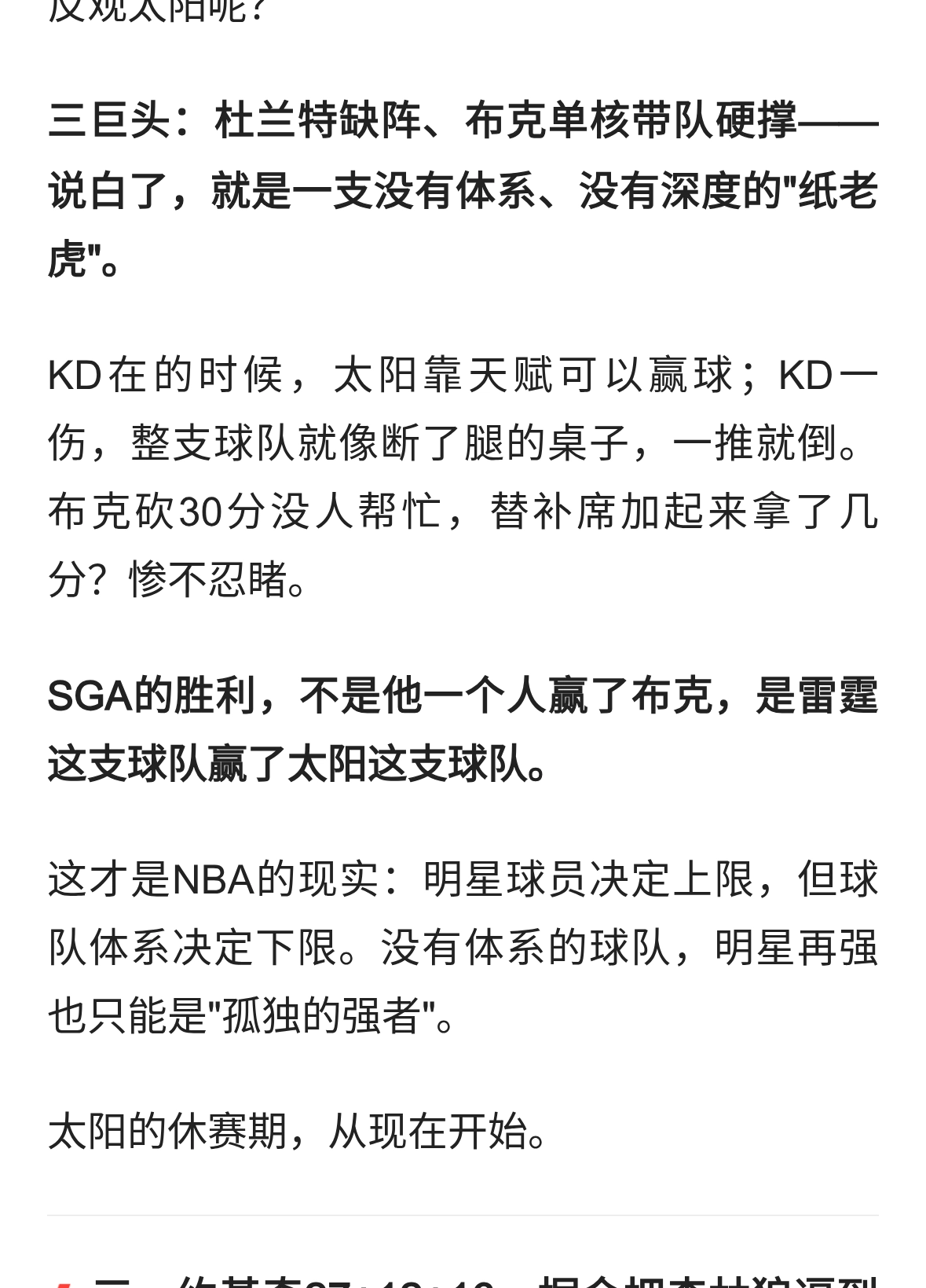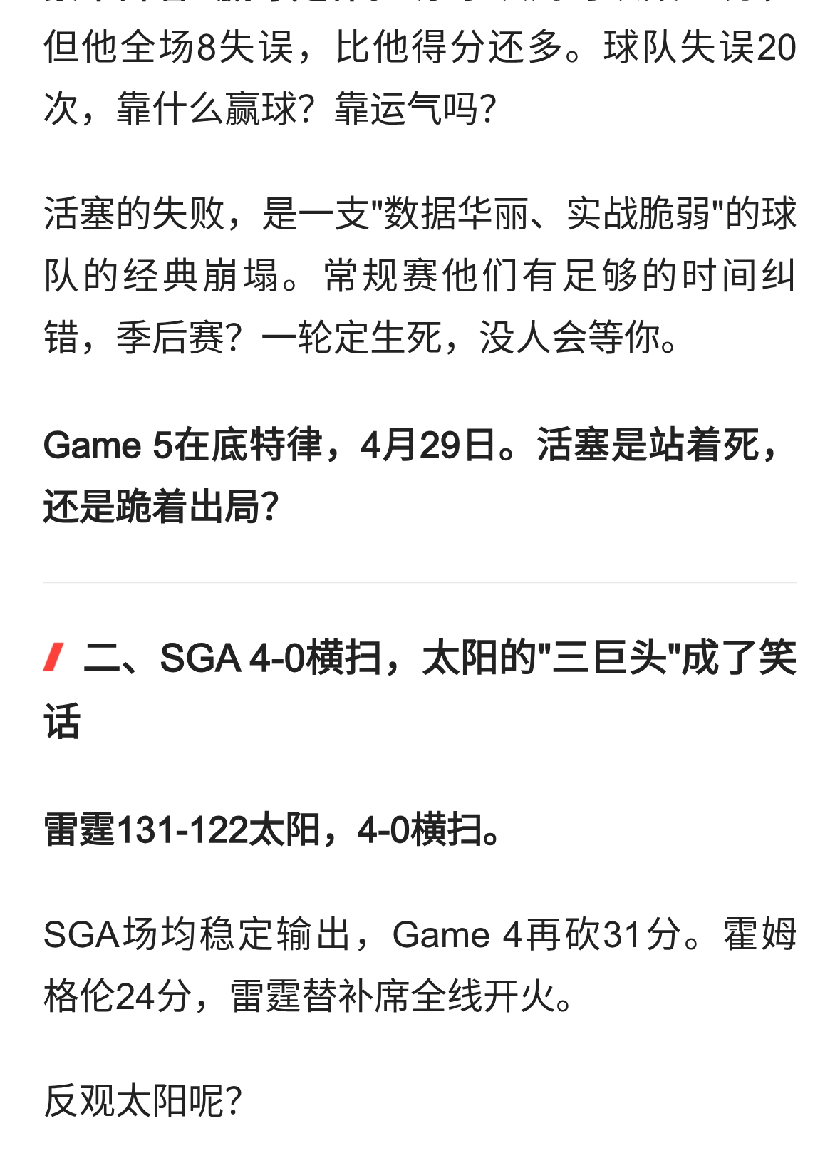 活塞3-1濒临出局、SGA横扫太阳、约基奇单核carry