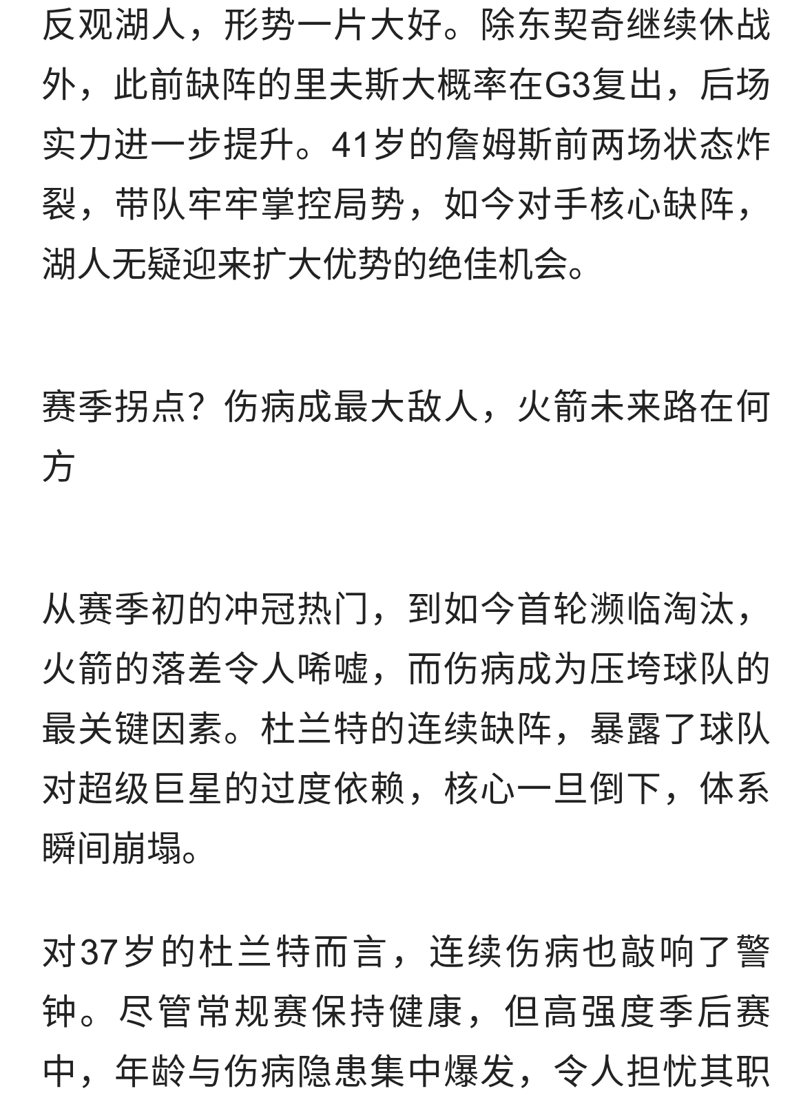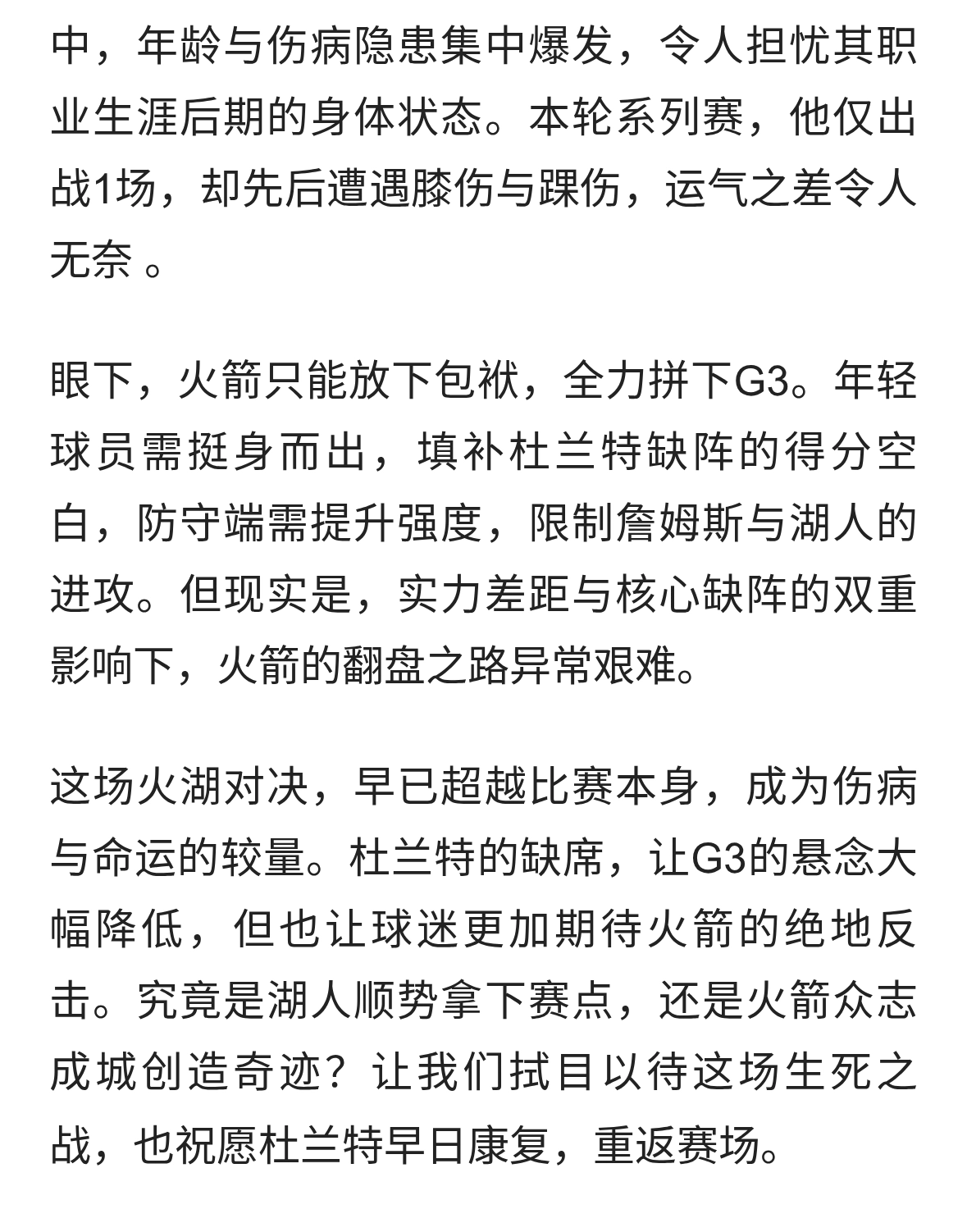 杜兰特左脚踝扭伤确认缺席火湖G3,火箭0-2落后再遭致命打击