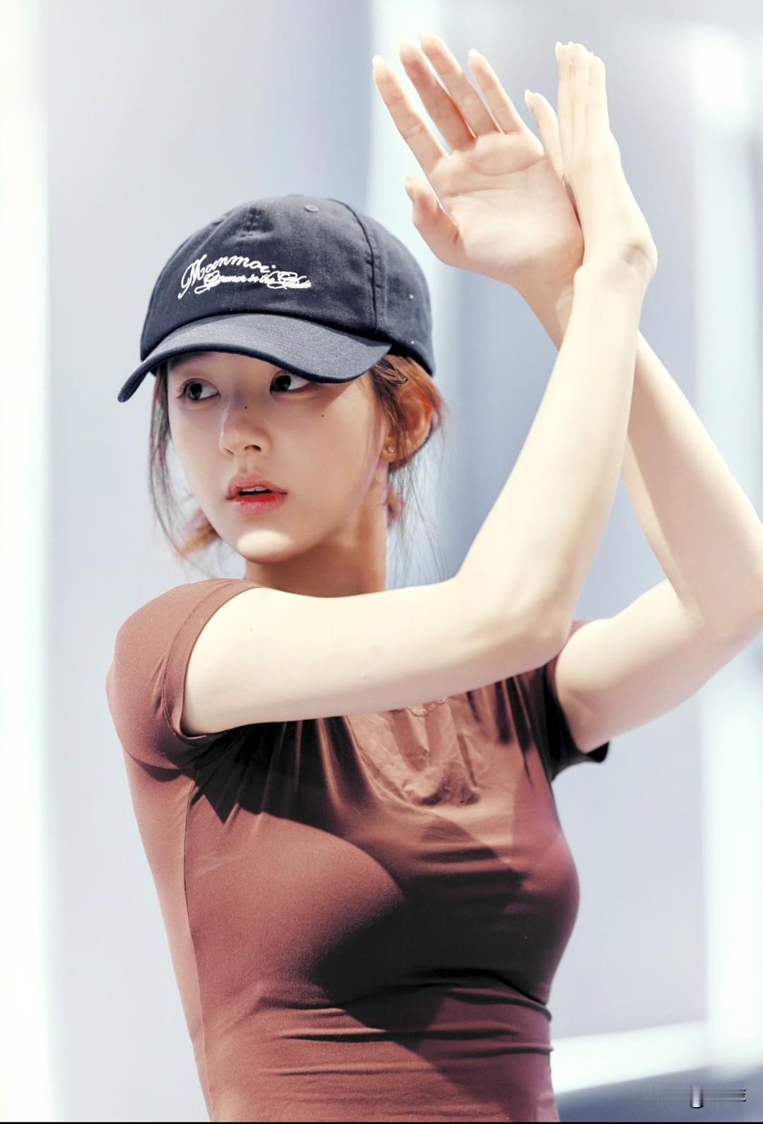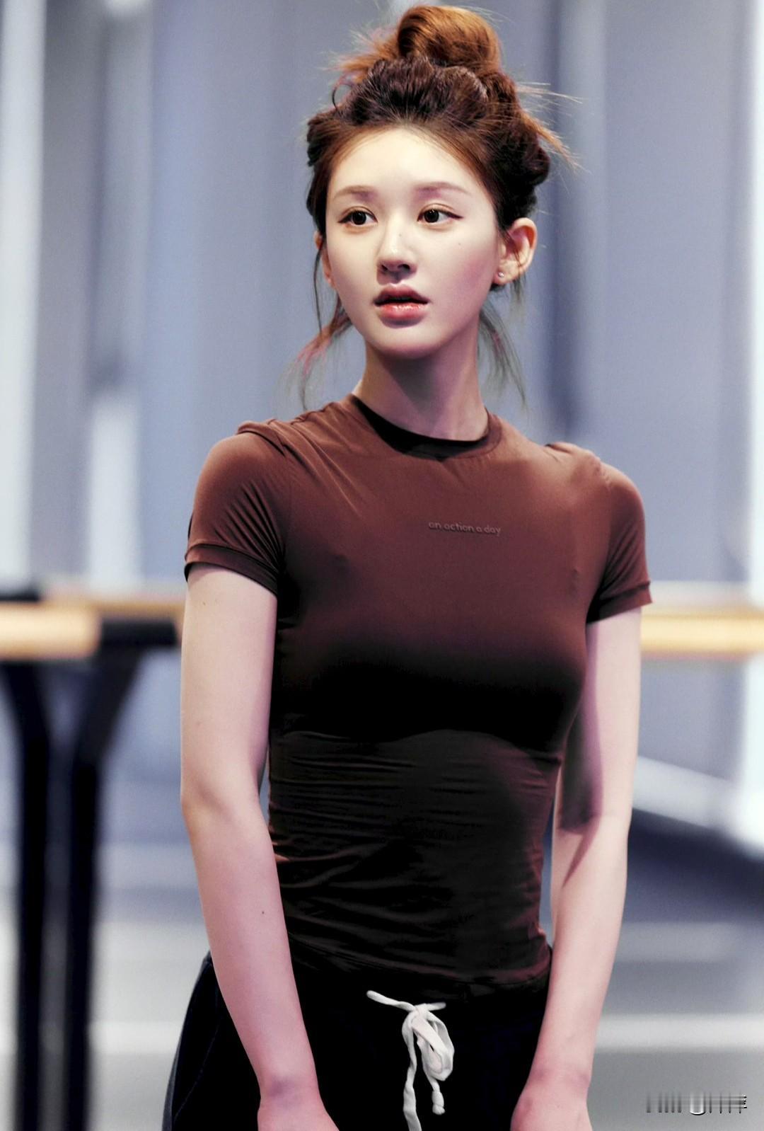 赵露思这组运动随拍也太有元气感了!高马尾配紧身咖色T恤,线条利落又清爽,笑起来眉