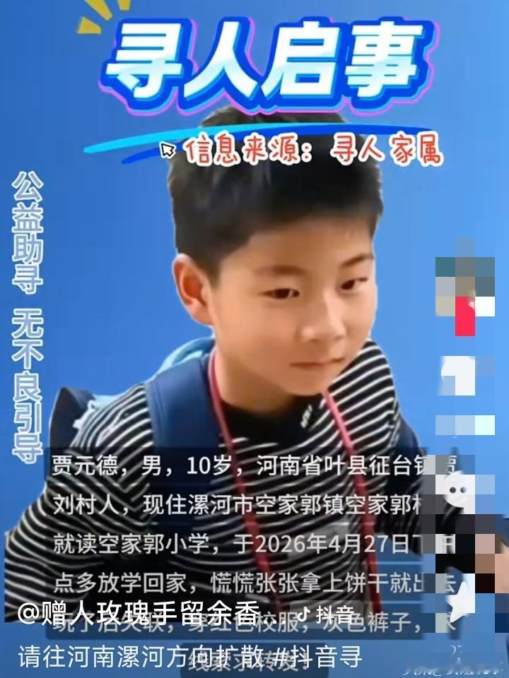 恳请刷到这条视频的好心人,多多留意这名红蓝校服的十岁男孩。哪怕只有一丝线索,麻烦及时提供,愿孩子平安归来。