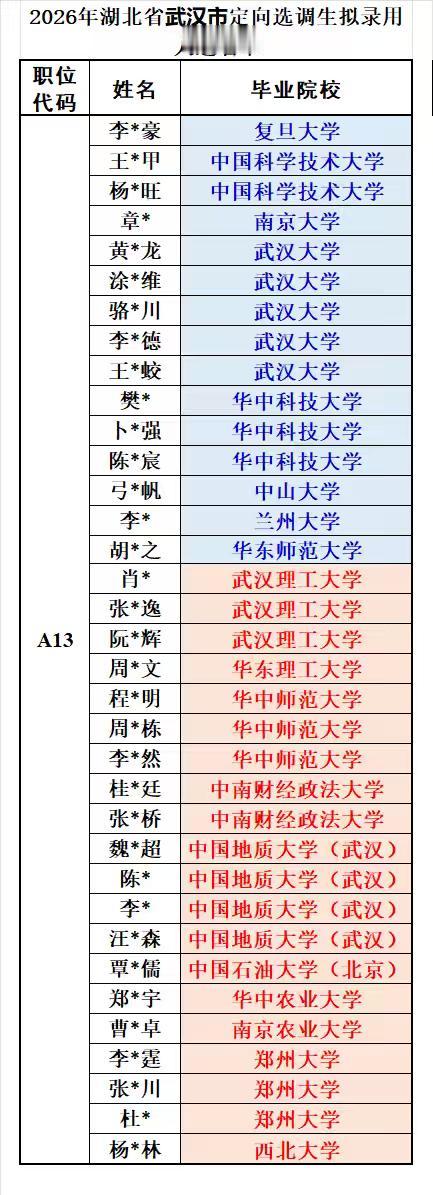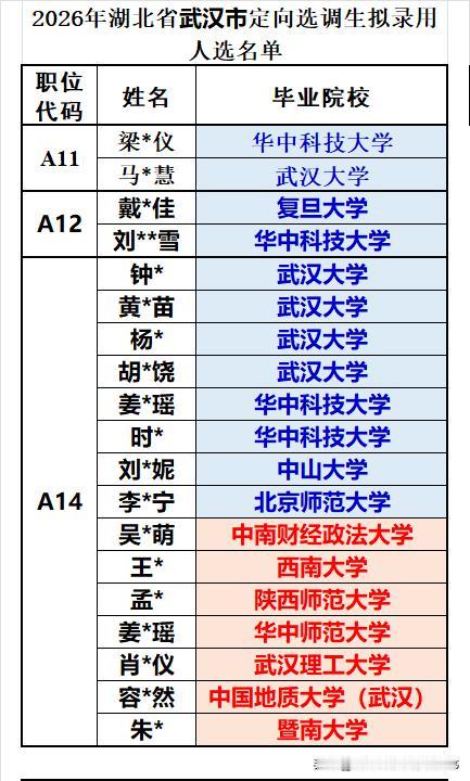 武汉市2026年录用定向选调是103人: ❶共设置14个职位,录用要求211院校