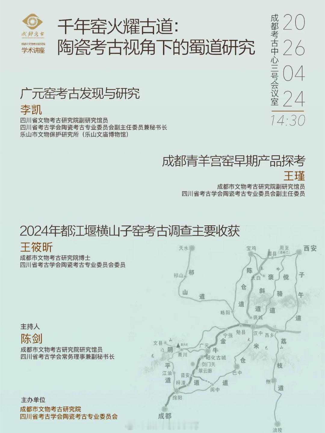 学术讲座考古研究成都考古新发现成都考古在线成都市文物考古研究院《千年窑火耀古道》学术讲座成功举办近日,成都市文物考古研究院、四川省考古学会陶瓷考古专业委员会在成都考古中心,联合举办了学术讲座《千年窑火耀古道:陶瓷考古视角下的蜀道研究》。来自四川大学、四川师范大学、四川省文物考古研究院、成都市文化广电旅游局(成都市文物局)、都江堰市文物保护中心、成都市文物考古研究院等单位的业务人员50余人参加了学术讲座。四川省文物考古研究院副研究馆员、四川省考古学会陶瓷考古专业委员会副主任委员兼秘书长李凯,成都市文物考古研究院副研究馆员、四川省考古学会陶瓷考古专业委员会副主任委员王瑾,成都市文物考古研究院博士、四川省考古学会陶瓷考古专业委员会委员王筱昕分别进行了专题学术报告。成都市文物考古研究院研究馆员、四川省考古学会常务理事兼副秘书长陈剑主持了学术讲座。四川陶瓷考古研究具有悠久学术传统,特别是青羊宫窑、邛窑等重要窑址,历经数代学者持续考古与研究工作,在学界产生重要影响。为整合省内陶瓷考古研究力量,搭建高水平专业学术平台,推动四川陶瓷考古研究走向系统化、规范化、科学化与国际化,经多方积极筹备, 2026年3月28日,由四川省考古学会指导,邛窑遗址博物馆(邛崃市文物保护中心)承办的“四川省考古学会陶瓷考古专业委员会第一次会员大会暨成立大会”在四川省成都邛崃市举行。2023年12月,国家文物局组织制定《考古中国:蜀道工作计划(2024—2028)》,纳入“考古中国”重大项目,这是国家文物局“考古中国”重大项目中第一个以线性遗产为对象的考古项目,蜀道的考古调查工作为探索同类型文化遗产的工作方法提供了典型范例。项目启动以来,已完成了6条蜀道主线的调查工作,对蜀道及沿线文物遗存的保存现状进行了系统摸底,新发现的各类遗存实证了蜀道在统一国家治理体系中的重要作用。四川地区的陶瓷窑址是蜀道考古研究的重要组成内容。有鉴于此,为推进蜀道考古及四川陶瓷考古研究的深入化和多样化,成都市文物考古研究院、四川省考古学会陶瓷考古专业委员会联合举办了本次学术讲座。活动中首先进行了三场精彩纷呈的专题学术报告。四川省文物考古研究院副研究馆员、四川省考古学会陶瓷考古专业委员会副主任委员兼秘书长李凯博士,在题为《蜀道釉雅:广元窑考古发现与研究》的报告中,梳理了广元窑的考古概况,介绍了广元窑的产品种类、工艺特征,分析了广元窑的价值意义。报告中着重对广元窑产品的装饰工艺、窑炉工艺、装烧工艺进行了分析,并提出广元窑不仅满足一般民众需要,同时还为文人士大夫等富裕阶层生产高端雅器,接受宗教团体定烧祭祀用器,还可能受官府指派生产特殊供器,其窑炉技术、釉色品种、器形构成、装饰技法、装烧工艺等各个方面,都与以磁州窑为代表的中原北方地区联系更加密切,是一处技融南北的窑场。成都市文物考古研究院副研究馆员、四川省考古学会陶瓷考古专业委员会副主任委员王瑾,在题为《成都青羊宫窑早期产品探考》的报告中,重新整理以往窑址发掘出土的实物材料的基础上,结合已刊布的青羊宫窑遗址的发掘报告,对青羊宫窑具有早期时代特的产品做了系统梳理,分析其器型、胎釉、装饰特征及变化,对比墓葬出土资料及其他窑址材料进行时代考证,判断青羊宫窑的始烧年代,探讨其技术来源、传播背景与路径。认为其大约在6世纪前半开始生产,早期产品时代延续性较强,并受到长江中游窑场及中原北方窑场技术的双重影响。成都市文物考古研究院博士、四川省考古学会陶瓷考古专业委员会委员王筱昕,在题为《2024年都江堰横山子窑考古调查主要收获》的报告中,介绍了横山子窑址新发现遗迹点位,特别是两座新发现唐代窑炉的结构,结合钻探对窑址周边古河道及瓷土资源进行了分析,并对横山子窑产品和窑具的基本面貌进行了总结,最后结合文献及窑业技术分析了横山子窑的兴衰背景及技术关联。在三场专题学术报告结束后,与会人员围绕四川地区陶瓷考古及蜀道考古研究相关问题展开了热烈的讨论和深入的交流。(来源:成都考古微信公众号)
