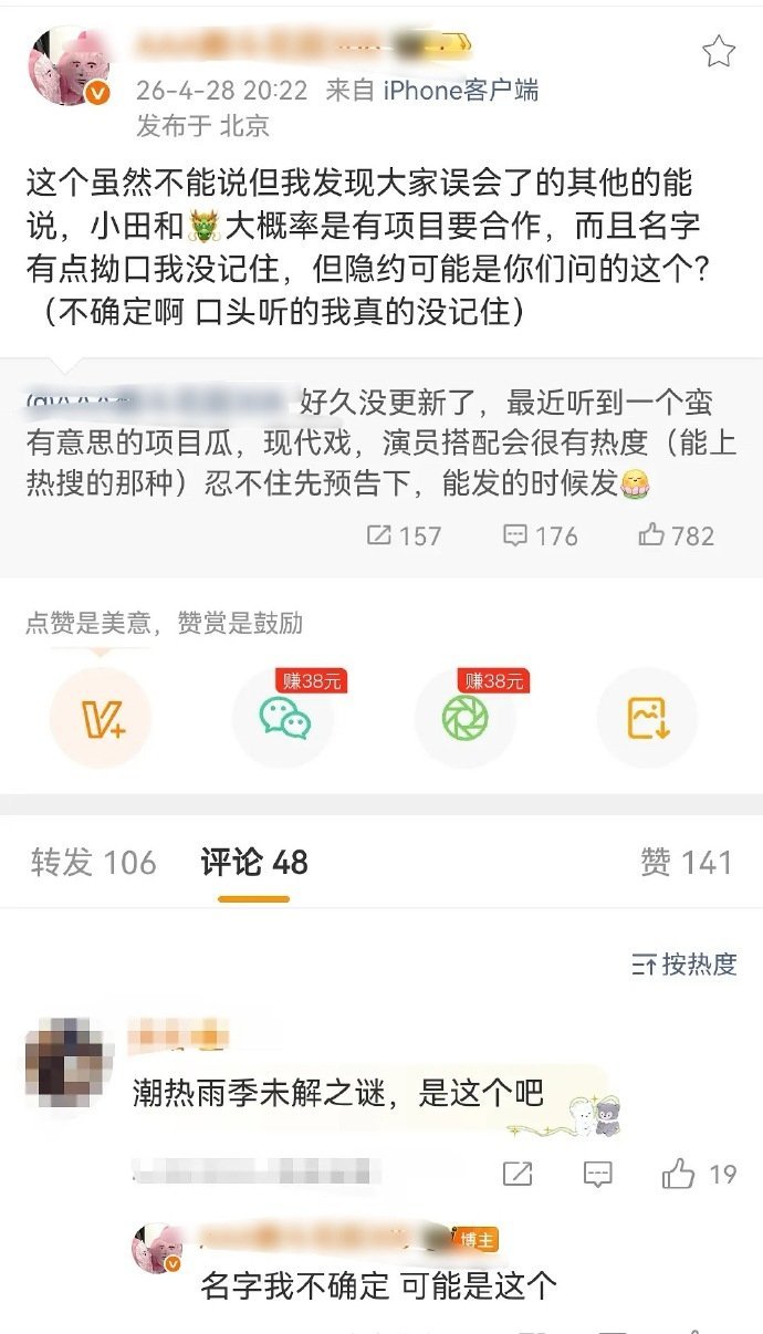 宋威龙田曦薇破万剧男女主要合作了潮热雨季未解之谜题材 宋威龙田曦薇破万剧男女主要合作了,潮热雨季未解之谜题材,咱就说两位浓颜系对我的眼睛很友好,燥侯正式官宣的见面啦!宋威龙田曦薇 潮热雨季未解之谜