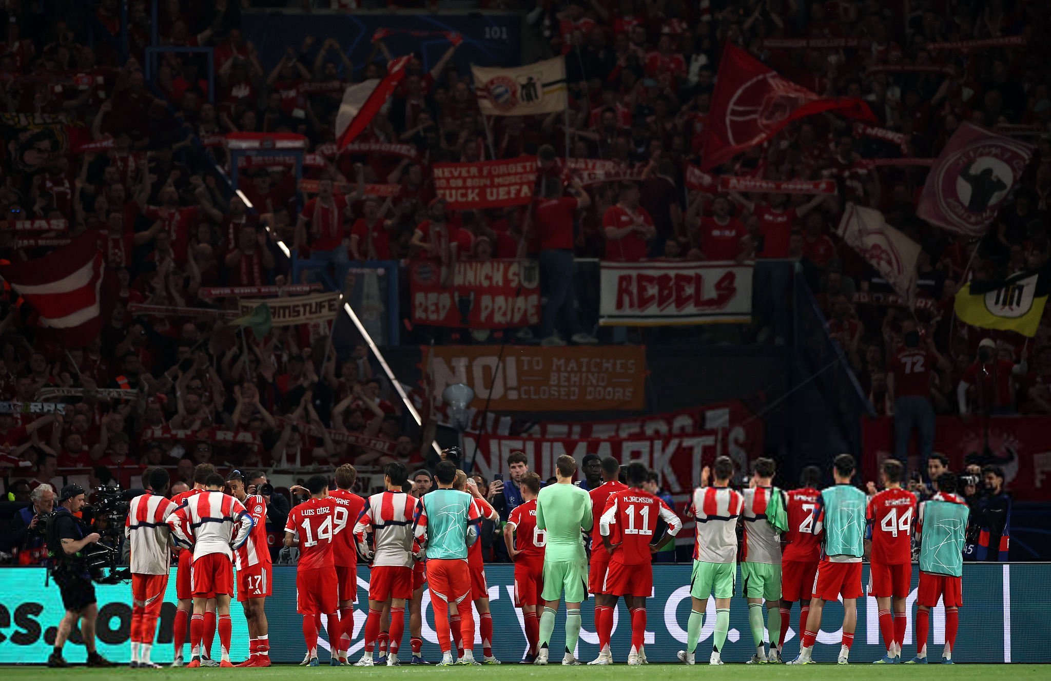 欧冠巴黎圣日耳曼5比4拜仁创欧冠半决赛进球记录克瓦拉茨赫利亚、登贝莱、若昂·内维斯、凯恩、奥利塞、路易斯·迪亚斯、于帕梅卡诺进球