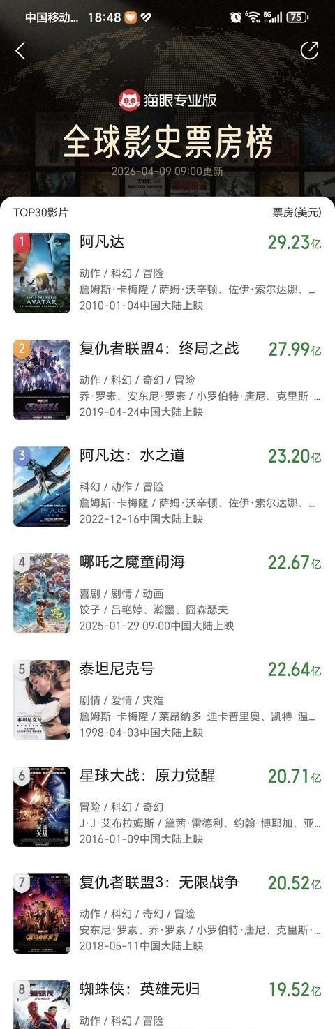 《哪吒2》全球票房正式超《泰坦尼克号》了,排全球第四!全靠平台补录了马来西亚那边