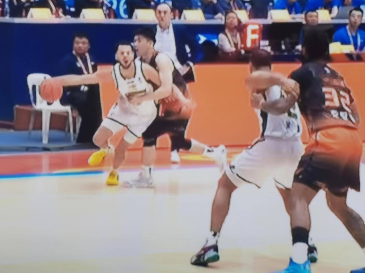 昨晚第三节刚开始,鄢手骐在大禁区右侧底线处对准备接球的陈培东贴身紧逼,致使对方碰球出界,裁判把球权判给山东队。乌戈见状,毫不犹豫提出挑战,为本队争回了球权,并因此有了赵继伟的第三个3分球……