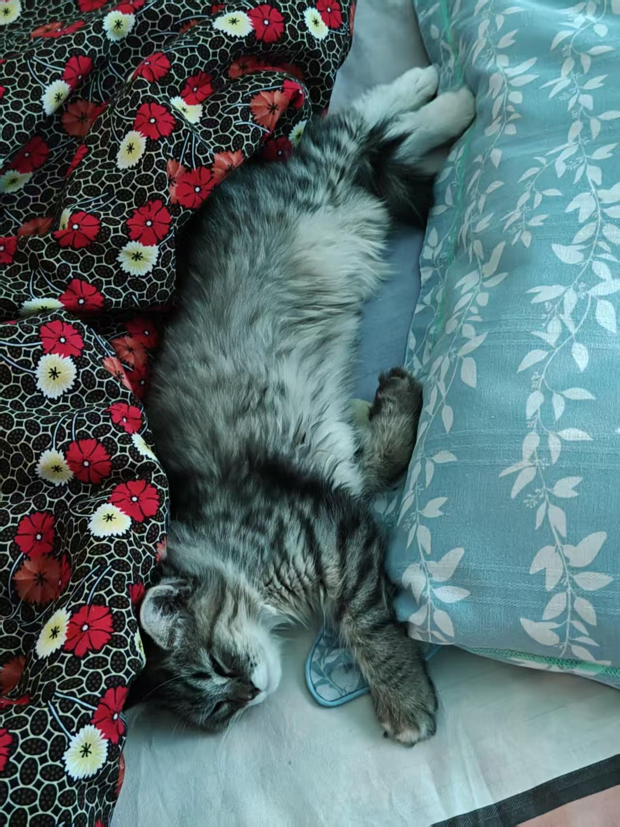 但仔细想来冥冥之中,似乎早已经有预兆了。在年前的时候,我在家休假,有天早上起得早,一出门,吓我一跳,门口的脚垫上居然躺着一只橘猫,看样子是一只死猫,用手试试已经僵了!我第一时间想到的是有人恶作剧,但是去看了监控,发现是从楼道里(我家四楼)上来的流浪猫。大概情况也许是这样吧:在寒冷的冬天凌晨,零下十几度,一只饥肠辘辘、快要冻僵的流浪橘猫,踉踉跄跄的喘着粗气想到楼里面暖和一下,她爬啊爬啊,好不容易爬到了4楼,有一户人家门前铺着一块看上去暖暖的、厚厚的绒地垫,那好像是她曾经的暖暖的窝,又好像是猫妈妈温暖的怀抱,她步路蹒跚费尽全力爬过去,轻轻的躺了上去,这短短的路程已经耗尽了全部的力气,她感觉慢慢不冷了,想要睡觉了,眼皮费力的抬起,又忍不住慢慢阖上,终于可以睡一觉了,梦中有吃不完的猫粮、温暖的猫窝、疼爱她的一家人。我问了领居一圈都没人知道她是谁家的,只好拿了个纸箱装起来,搬到了楼下绿化带里,也许太阳升起来她会慢慢醒过来,都说猫有九条命呢不是!