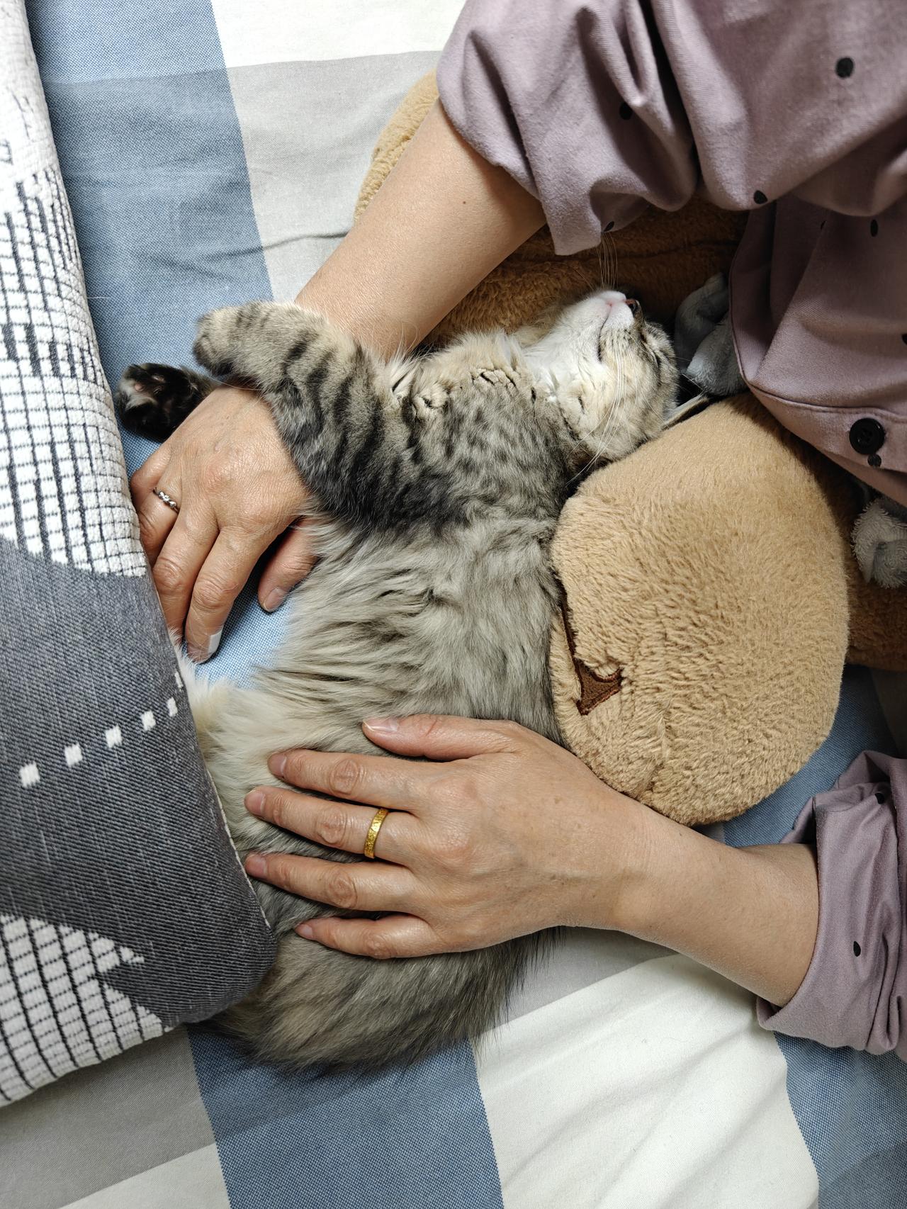 过了大概不到半个月,我媳妇在单位中午吃饭听其他部门同事说谁谁家的猫生了三只小猫,想送人。晚上她回来视频问我和儿子,我俩都以为她是心血来潮随便说说,一天拖两回地,一个星期就要床单被罩都洗一次的精干人,养猫?我们以前又不是没有说过,“养了就给你们扔出去”这是你说过的话,我们都以为是看着可爱,说着玩玩的。过了几天等她坐同事的车回家,我们在小区门口接她,她穿着羽绒服里面包着小猫,把我和儿子都惊呆了,完全想不到她会直接抱回小猫来!