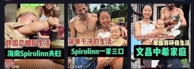 这个女子叫林宁,男方是来自希腊的斯皮罗斯,现在一家三口定居在海南文昌。很多人刷到视频,看到斯皮罗斯留着脏辫,常年光着上身,穿着洗得发白的旧裤子,就先入为主给他贴上了流浪汉的标签。