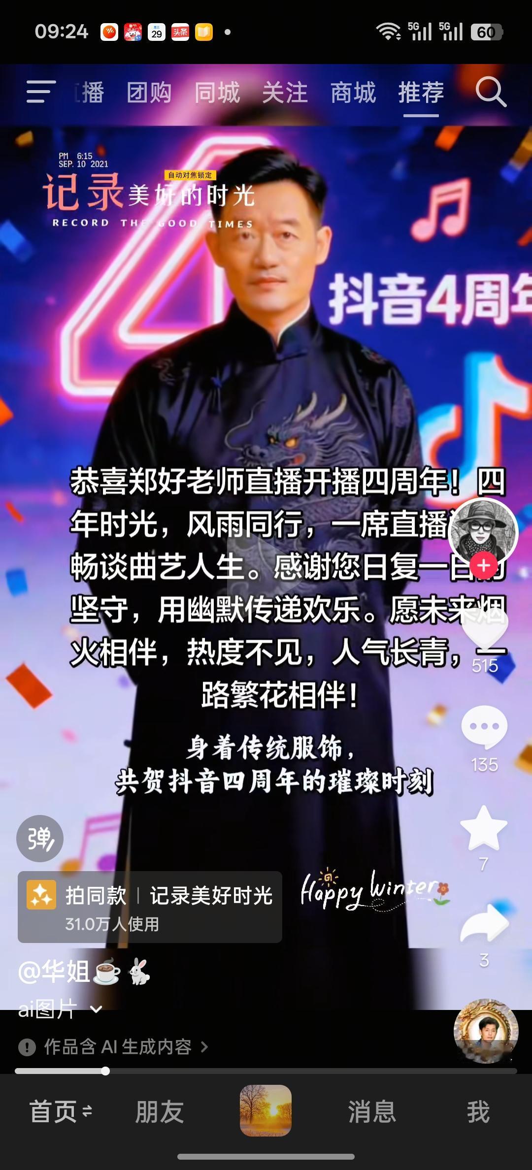 郑好直播四周年虽然抖音主页的光环随着黄V的消失只剩下德云社相声演员了,虽然戴九安