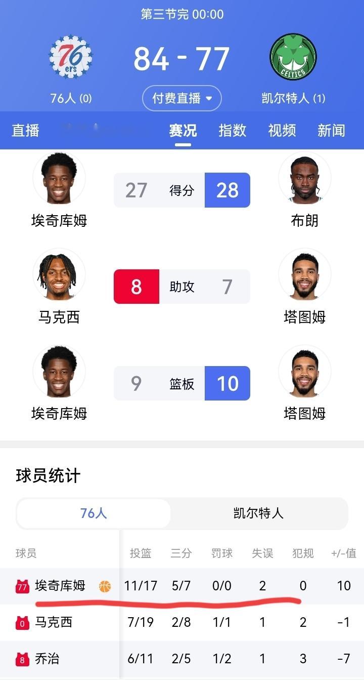 76人新秀探花郎三节出场27分钟就17投11中,三分7中5,0罚球砍下27分9板2助1断,嫣然成了76人的建队基石!