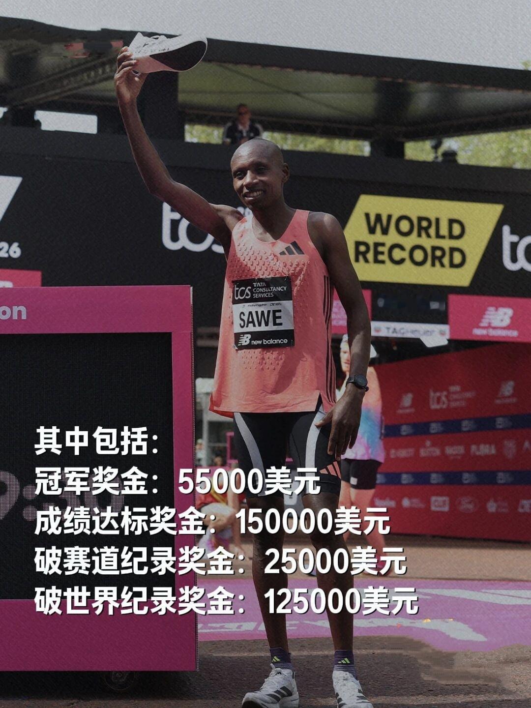 冠军奖金5.5万,破202成绩达标奖15万,赛道纪录奖2.5万,外加打破世界纪录12.5万,四项大奖全部拿满。