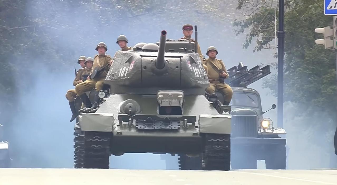 哈巴罗夫斯克(伯力),这里的阅兵式除了纪念胜利日,还纪念战胜日本法西斯,每年也有二战和现役的坦克受阅。