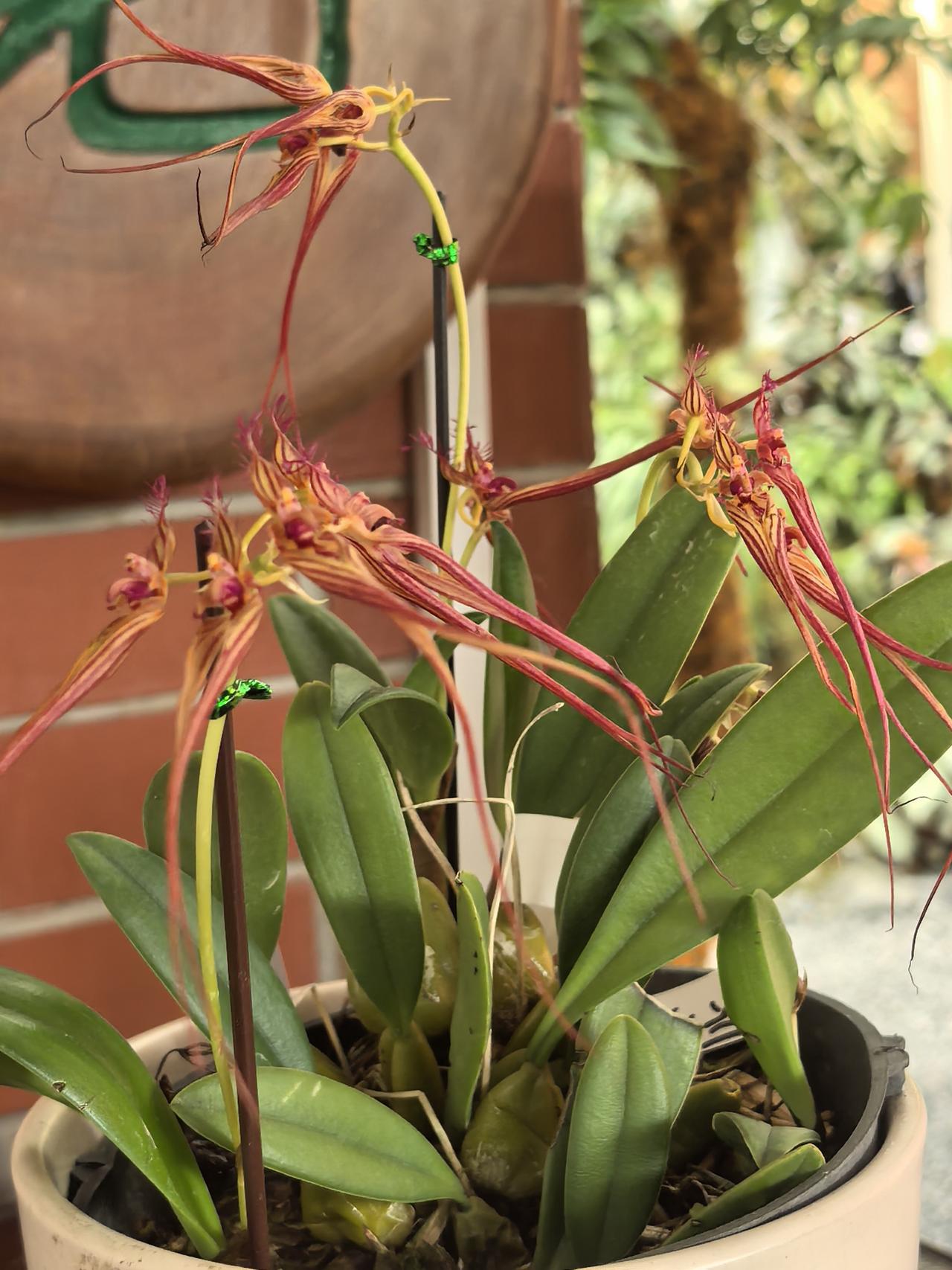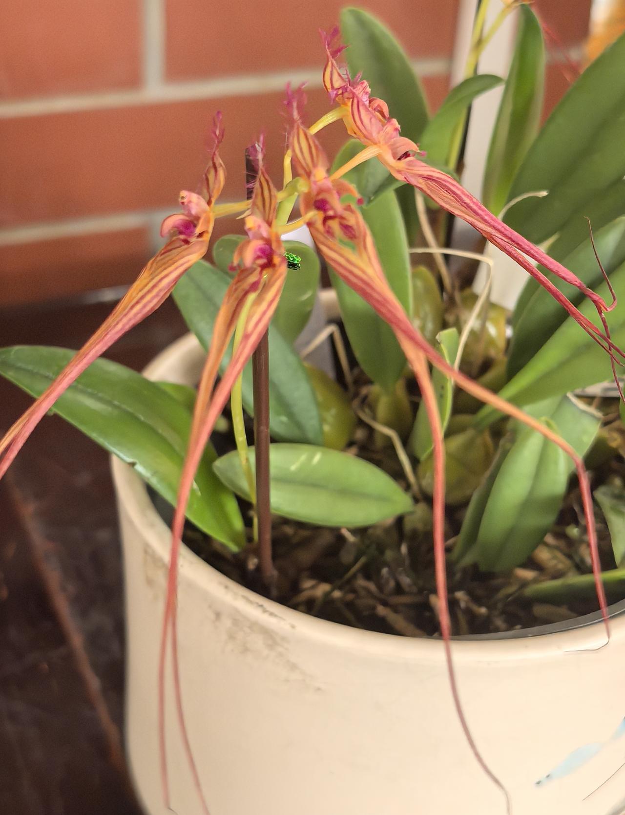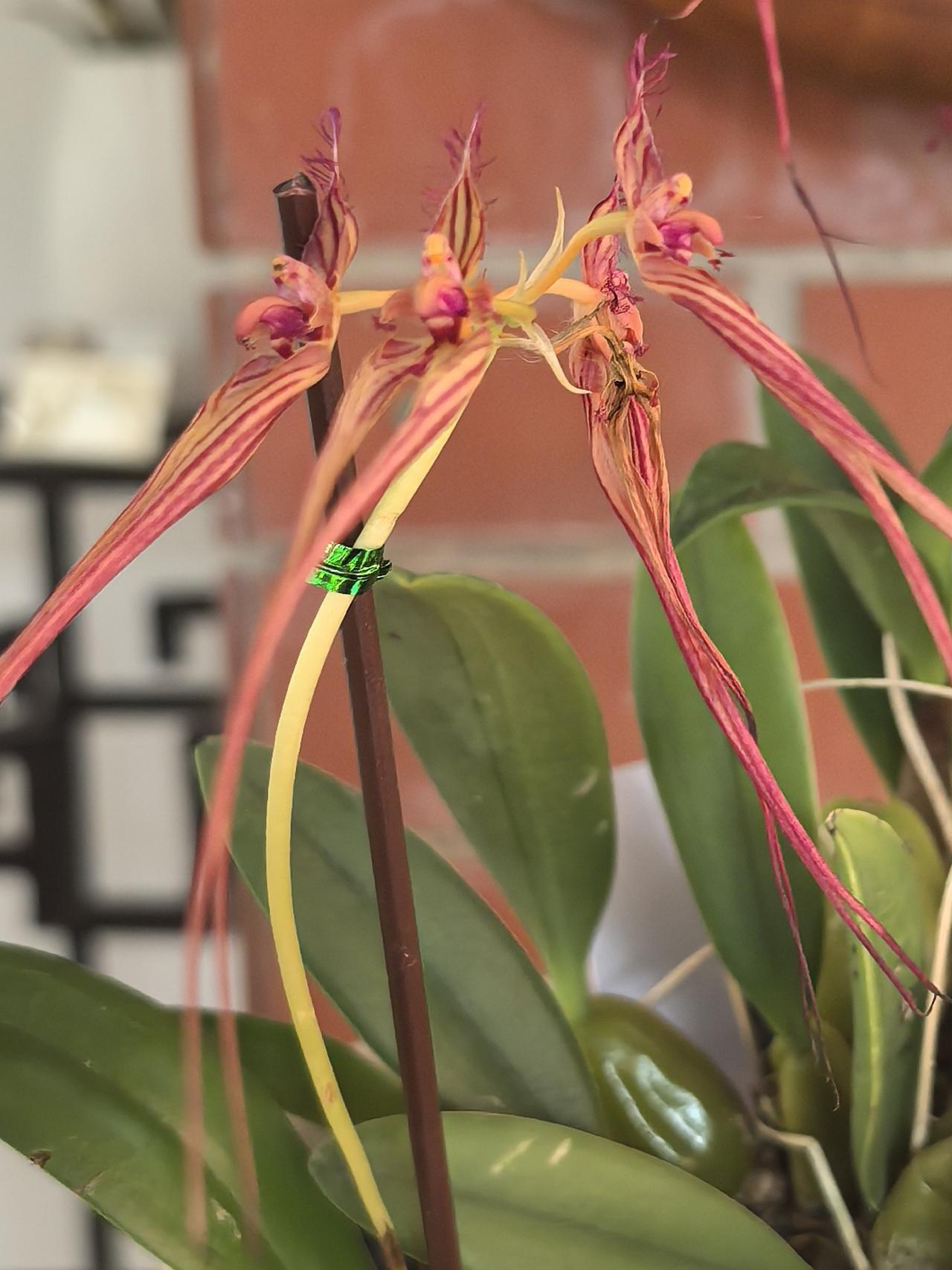 它的花瓣特化成了细长飘逸的尾须,最长能超过10厘米,开花时像一群振翅的燕子停在枝头,又像绽放的烟火,在石豆兰属里辨识度极高。