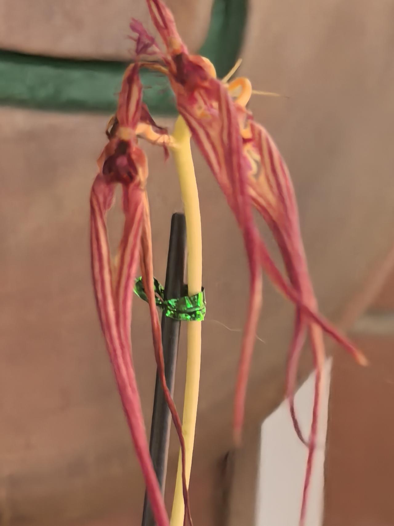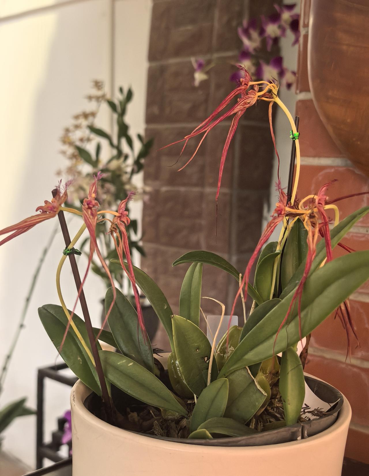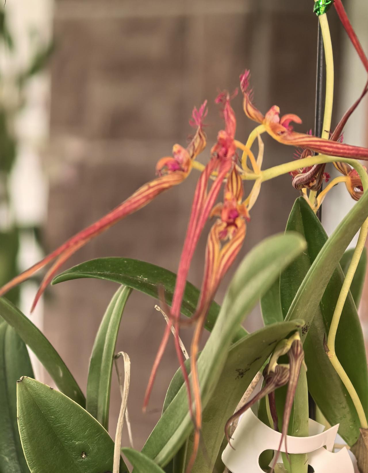它的花瓣特化成了细长飘逸的尾须,最长能超过10厘米,开花时像一群振翅的燕子停在枝头,又像绽放的烟火,在石豆兰属里辨识度极高。