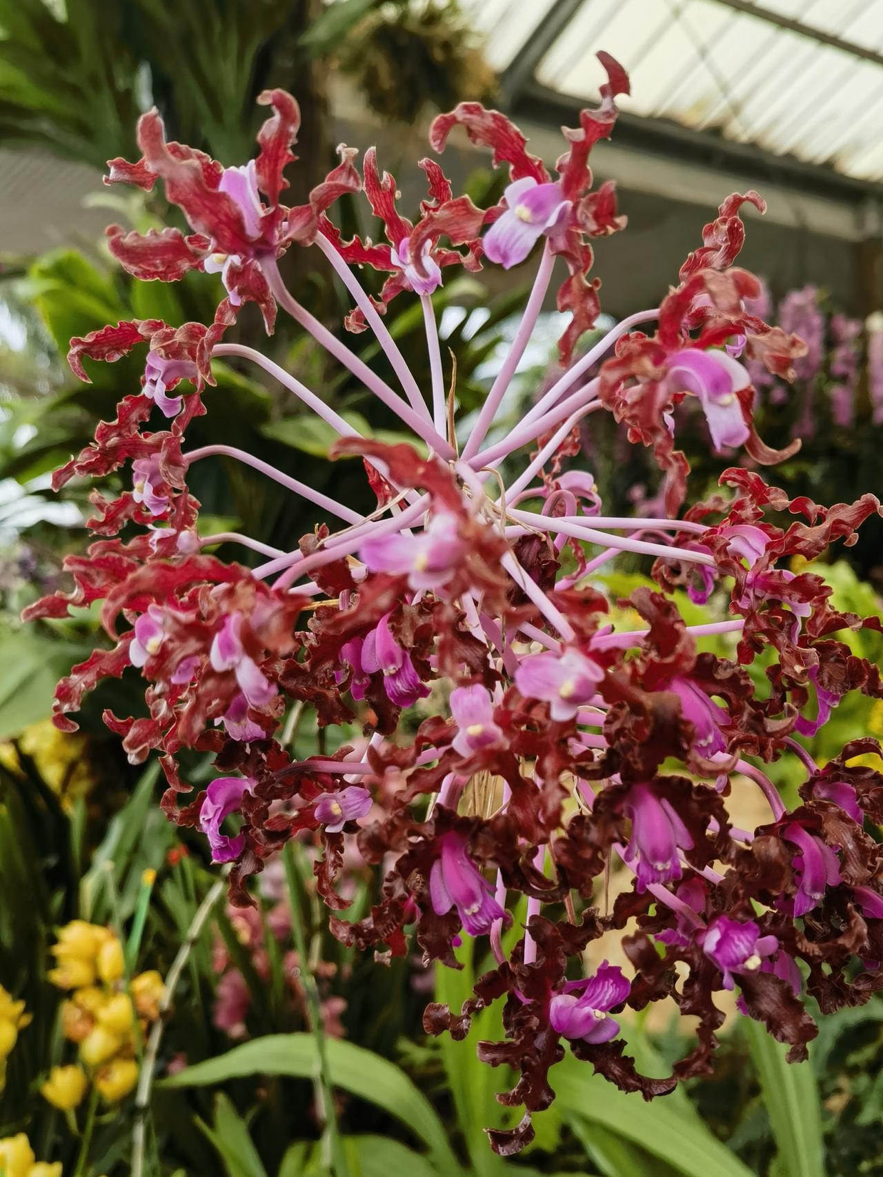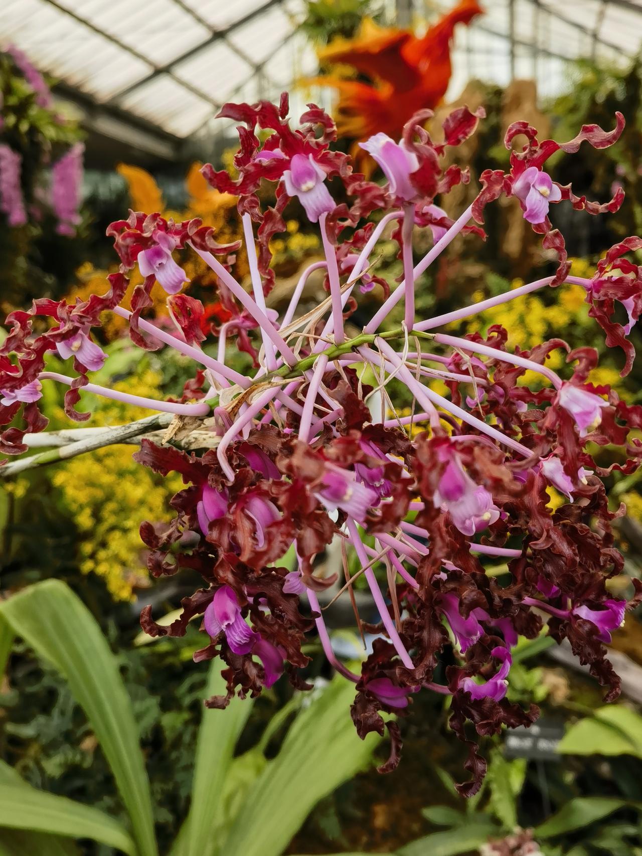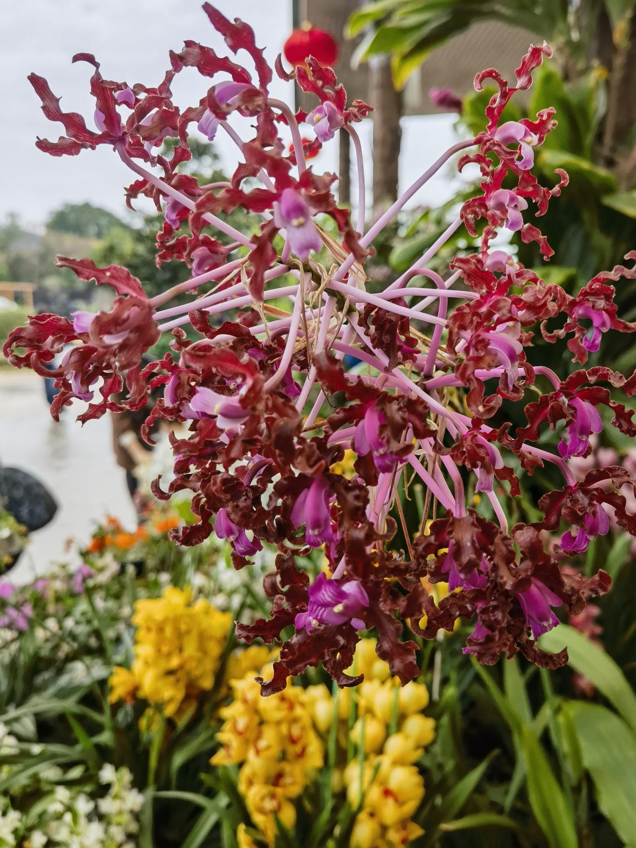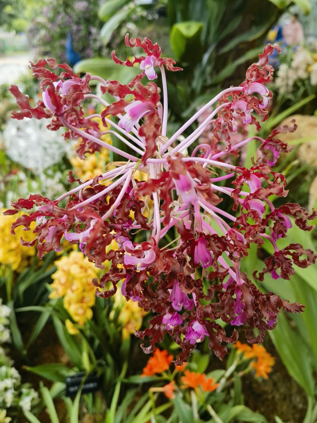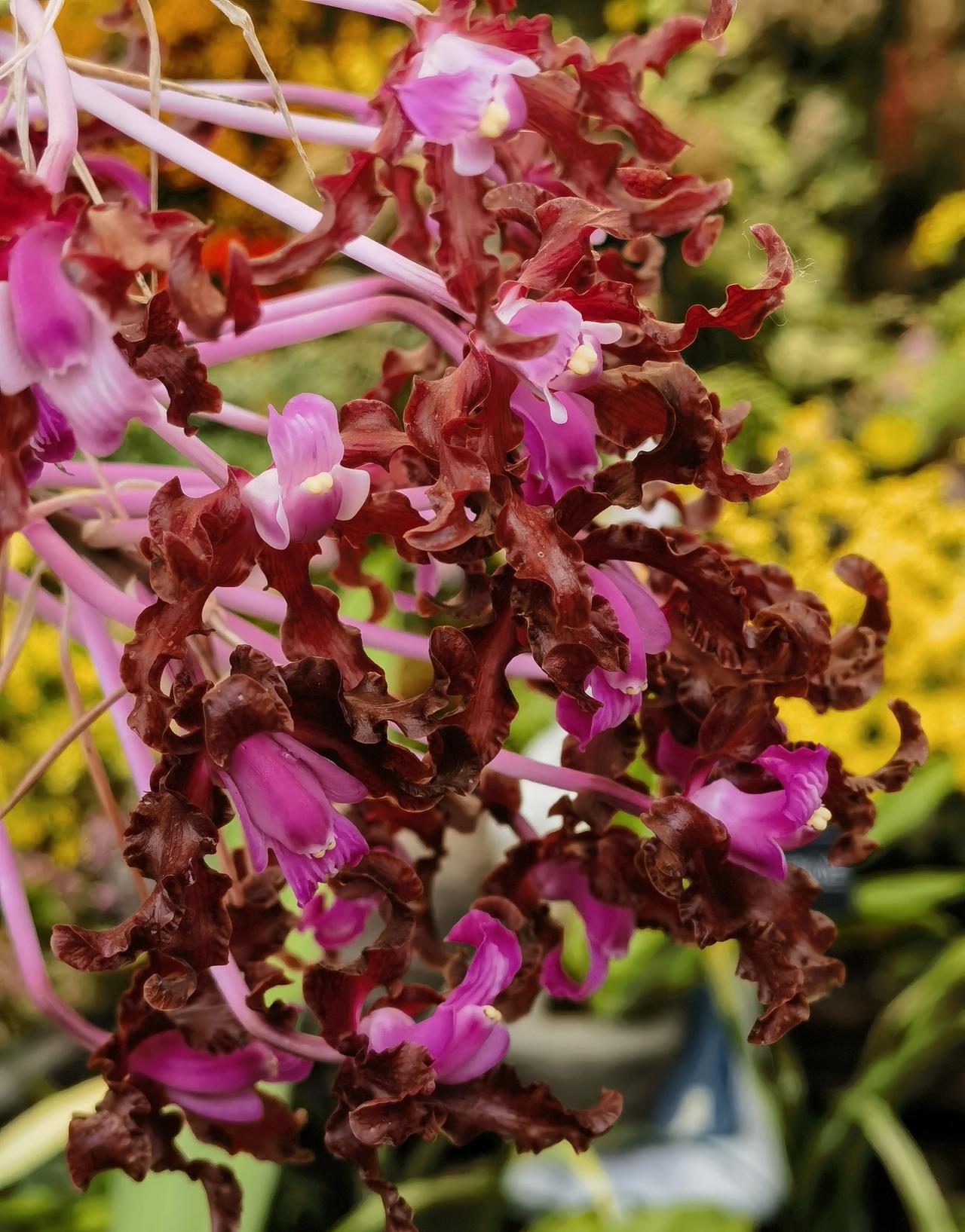 在华南国家植物园拍到一种珍稀的兰花,仅为它绚丽多彩的颜色和浓郁扑鼻的芳香所吸引,忽视了它像香蕉一样的假鳞茎。