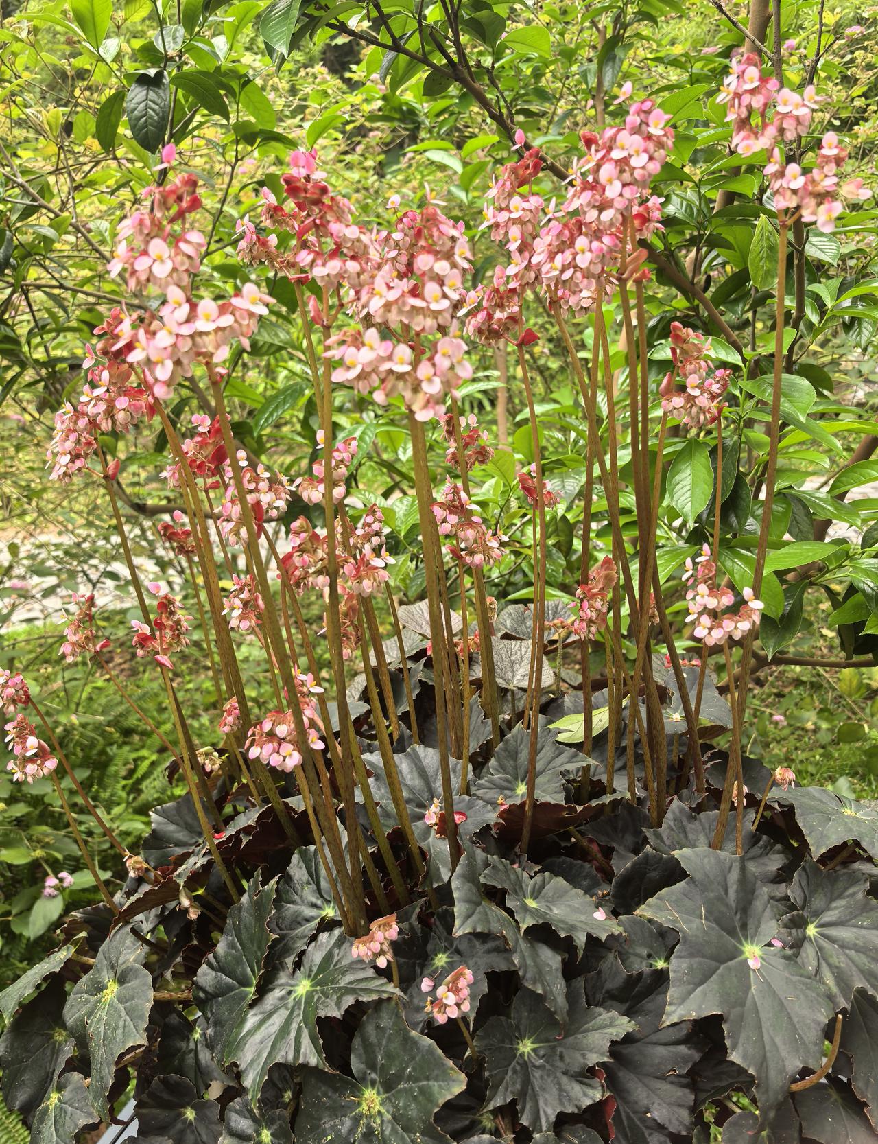 黑叶衬红花!一款奇异的秋海棠亮相广州云溪植物园,完全颠覆了我对秋海棠的认知。