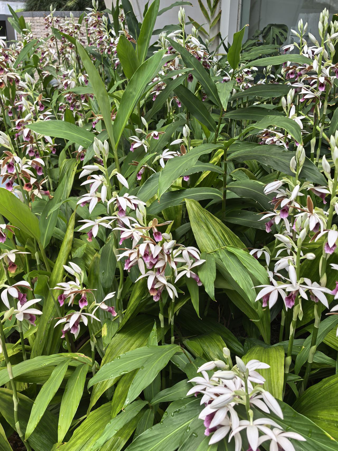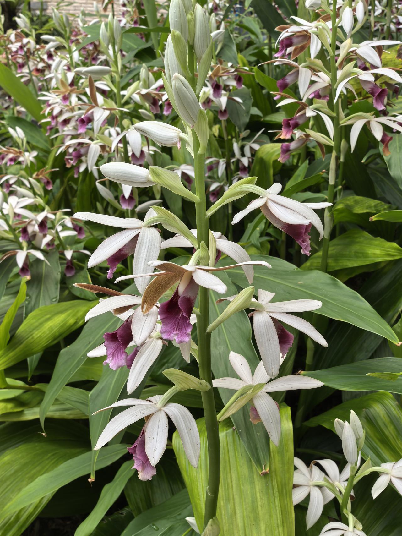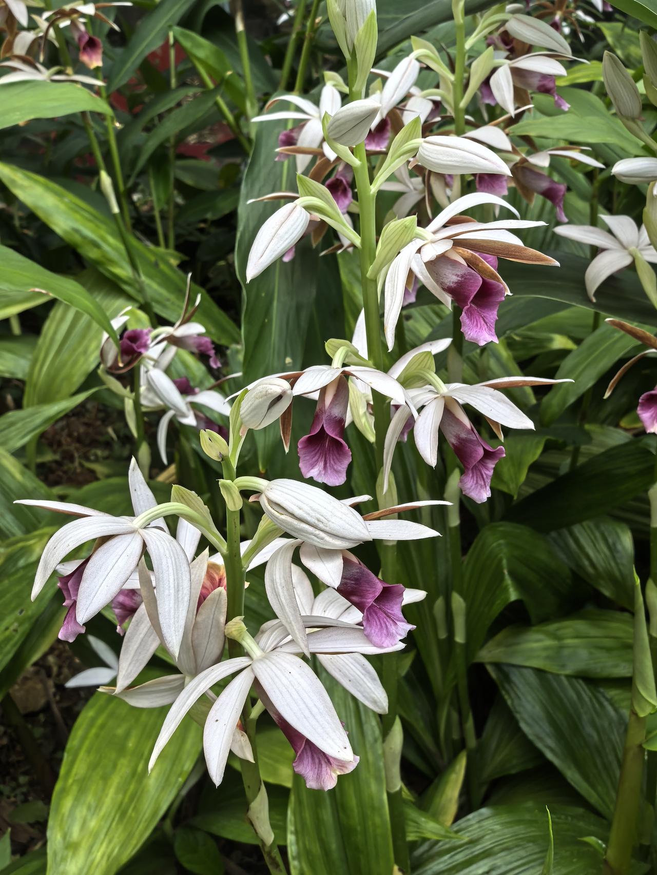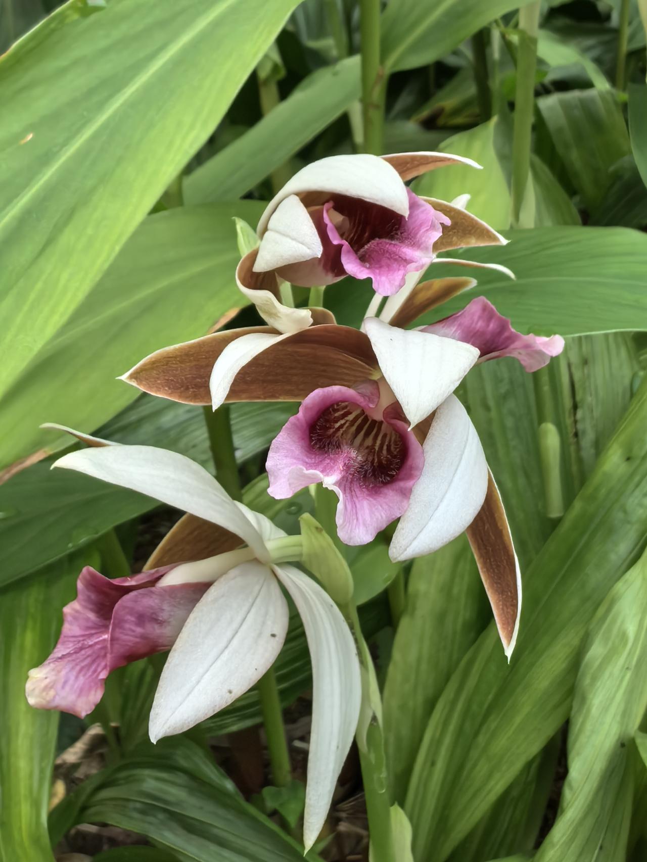 在一串花序上,通常只有最顶端那朵会“偷懒”保持半开状态,形态威武像“雄鸟”;下方5-8朵则尽情舒展,色彩艳丽像“雌鸟”。
