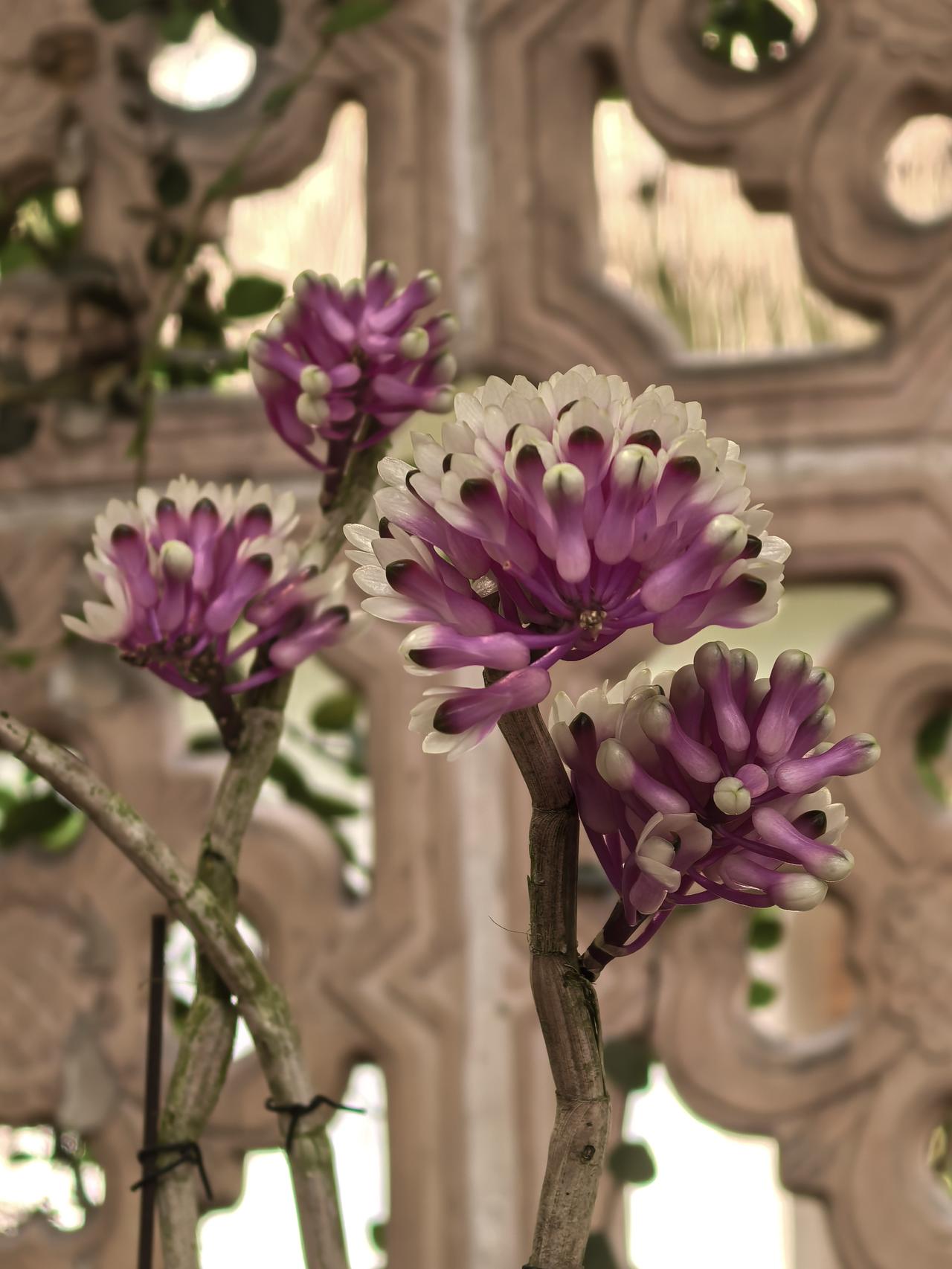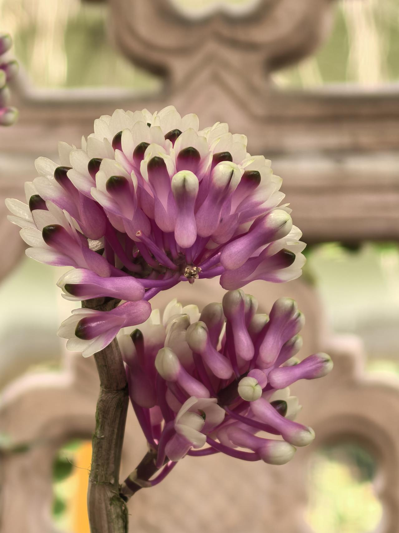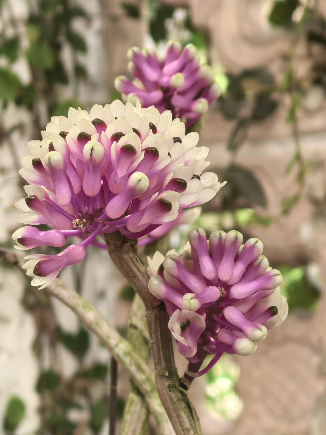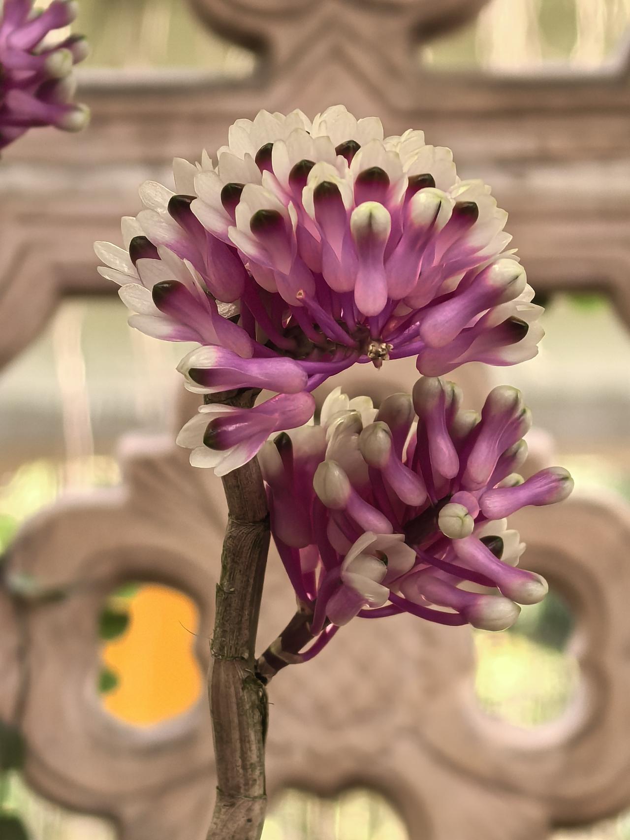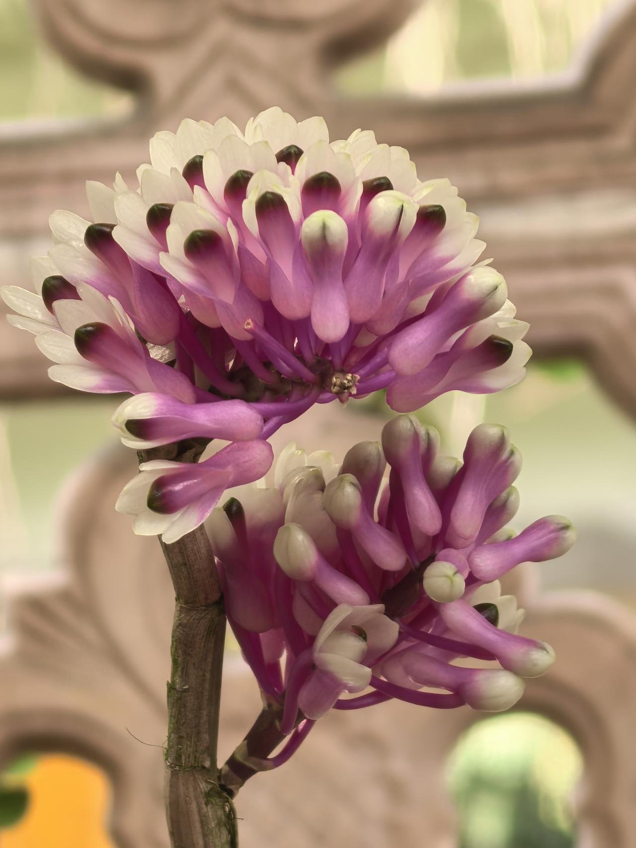 在广州兰圃“兰缘盛荟”展会上,拍到了一种石斛,花型奇特,花色艳丽,像可爱的小刺猬,名字十分怪异,就叫“牙刷X宝石〞。