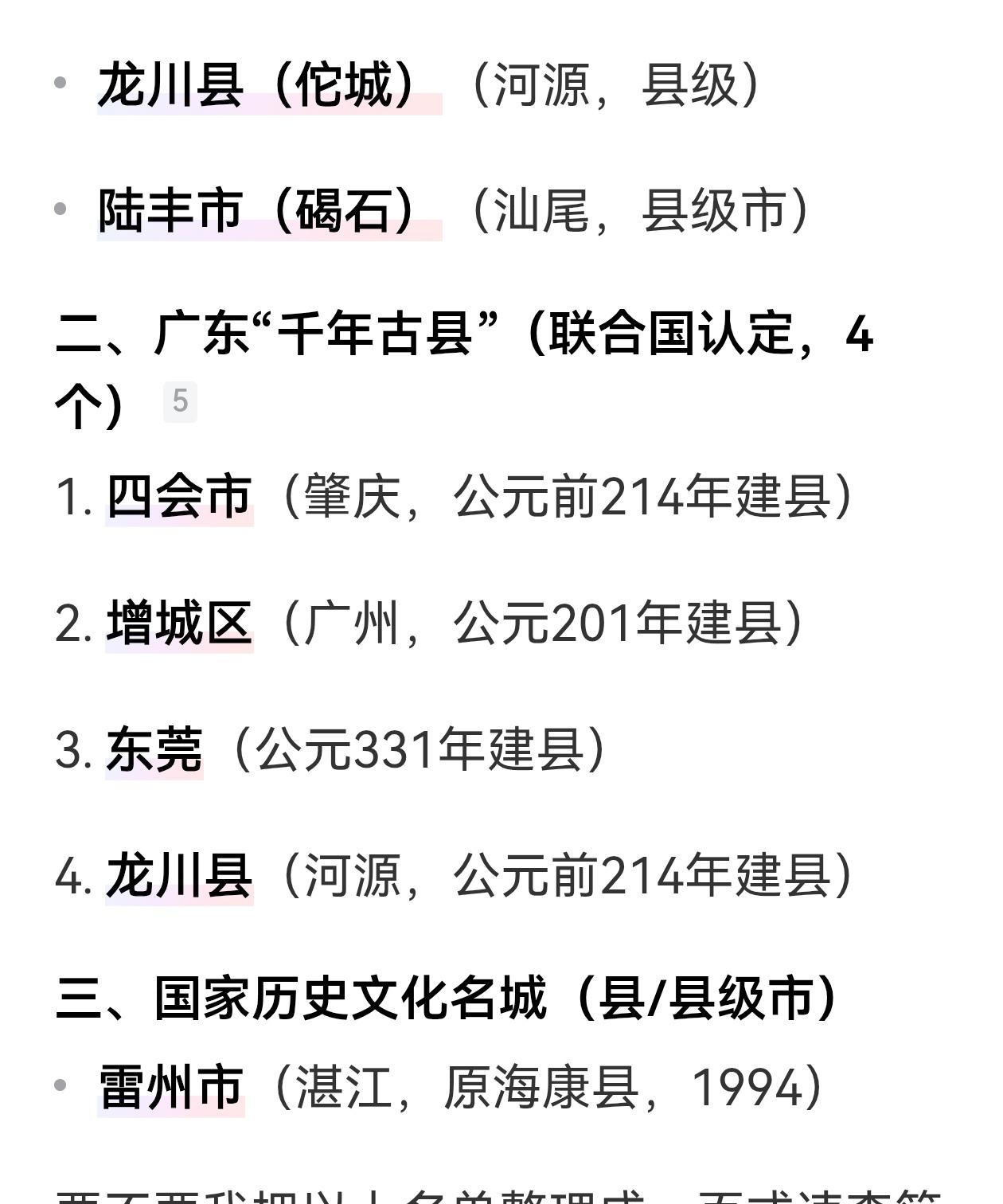 广东千年古县,联合国认定的广东4个,没有博罗。