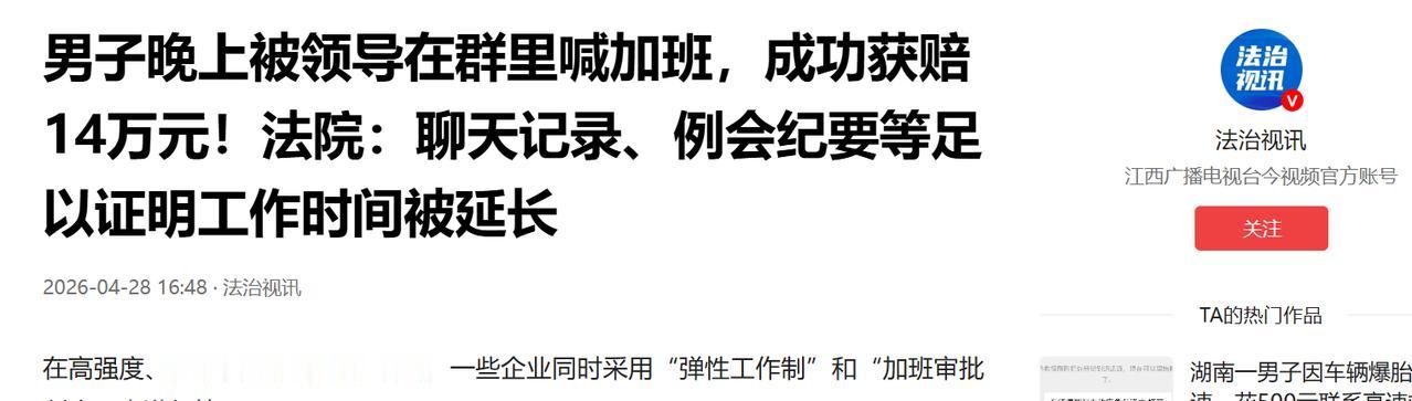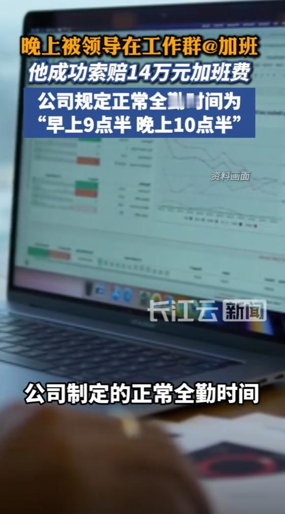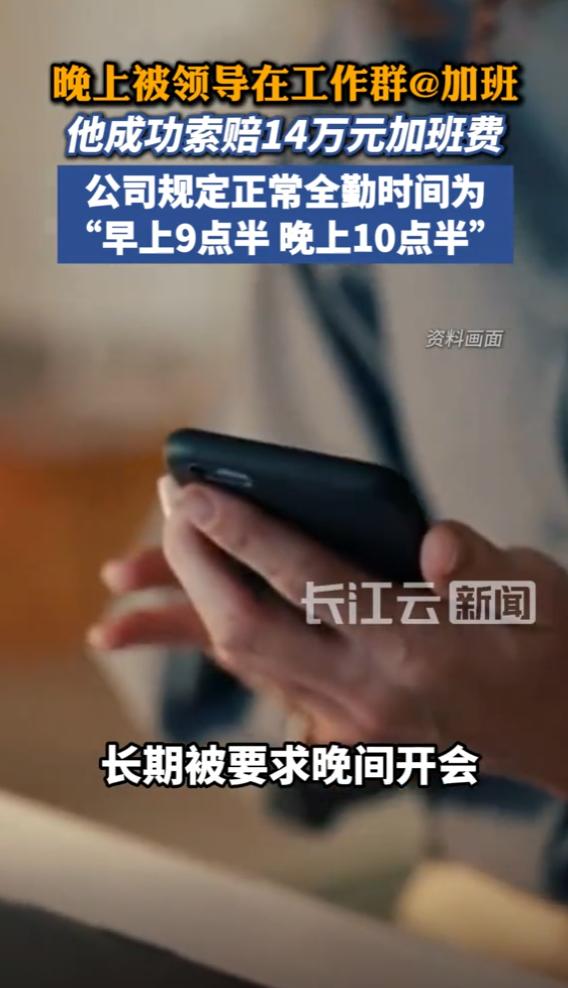 (信息来源:《被领导在工作群@加班,男子成功索赔14万元加班费》长江云新闻)
