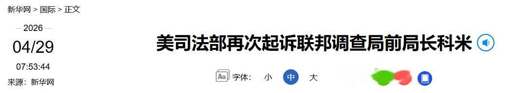 根据官方消息,美国司法部在北卡罗来纳州东区联邦地区法院提交了起诉书,指控科米威胁要“夺取特朗普的生命”,起因竟然是一张看似普通的社交媒体照片。