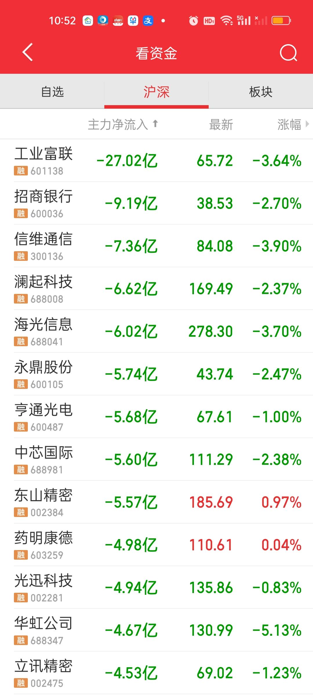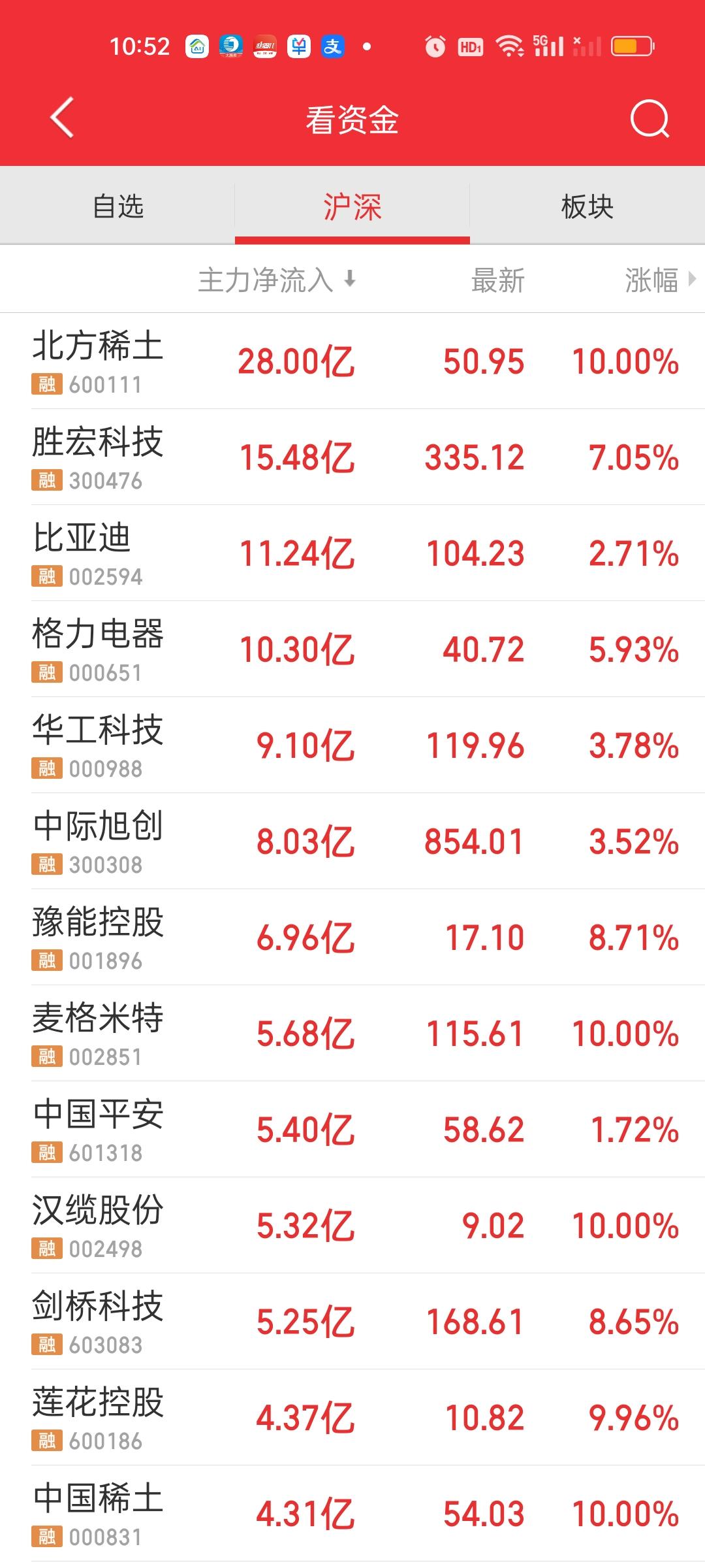 今天尽管缩量比较多,但大盘资金流出并不多,而且有接近4000家个股上涨,84家涨停,小微盘股表现要远远好于大盘股。今天赚钱效应还是挺好的。主力资金净流入超10亿的个股有4只,北方稀土,胜宏科技,比亚迪,格力电器。主力资金净流出超10亿的个股只有工业富联1只,净流出超27亿。