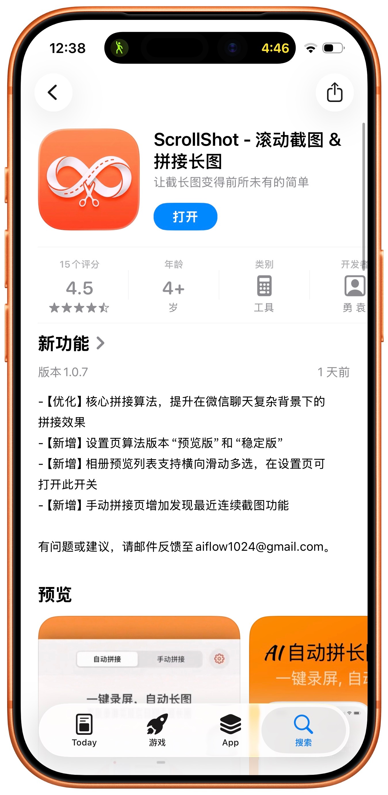 iOS 一款截长图App 限免,大家有长图需求的可以先收了。支持视频、图片自动拼