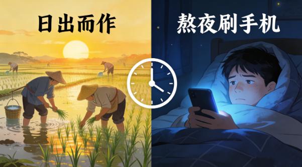 那时候没有闹钟,作息全看日升日落,熬夜就必然起晚,起晚就误了农时,误了农时就会减产。农耕时代,粮食就是命,一次减产可能就要饿肚子,次数多了,全家都要喝西北风。