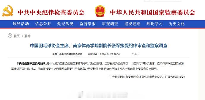 羽协主席张军被查张军涉嫌严重违纪违法 体育迷们怎么看?曾遭队员何济霆辱骂“死肥猪”!现在据中央纪委国家监委驻国家体育总局纪检监察组、江苏省纪委监委消息:中国羽毛球协会主席、南京体育学院副院长张军涉嫌严重违纪违法,目前正接受中央纪委国家监委驻国家体育总局纪检监察组纪律审查和江苏省南通市监察委员会监察调查。